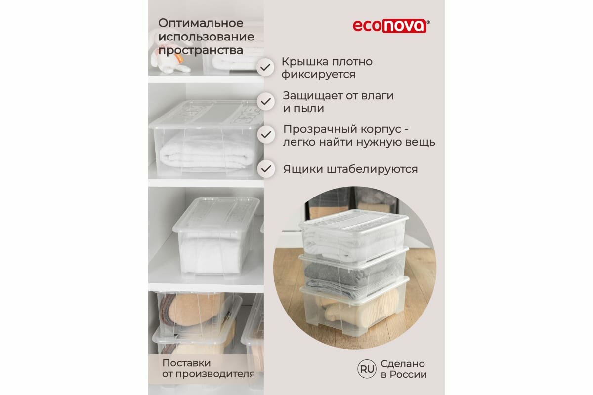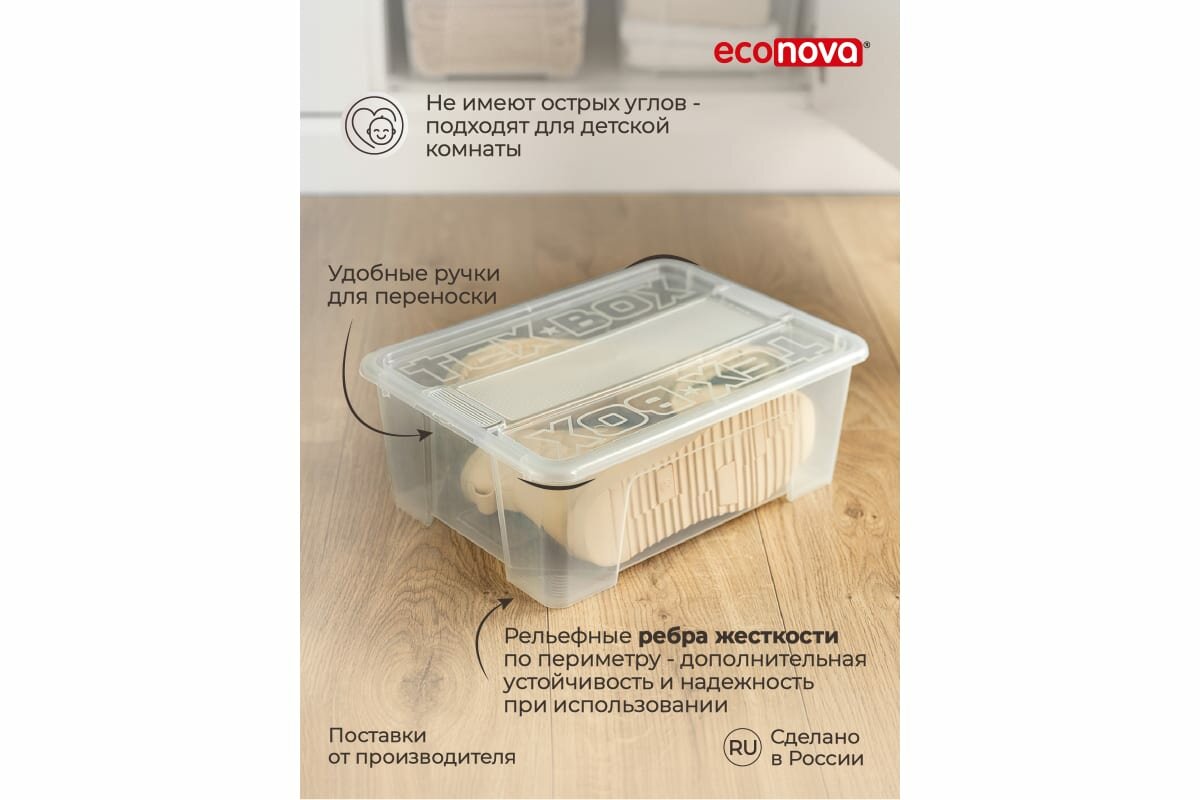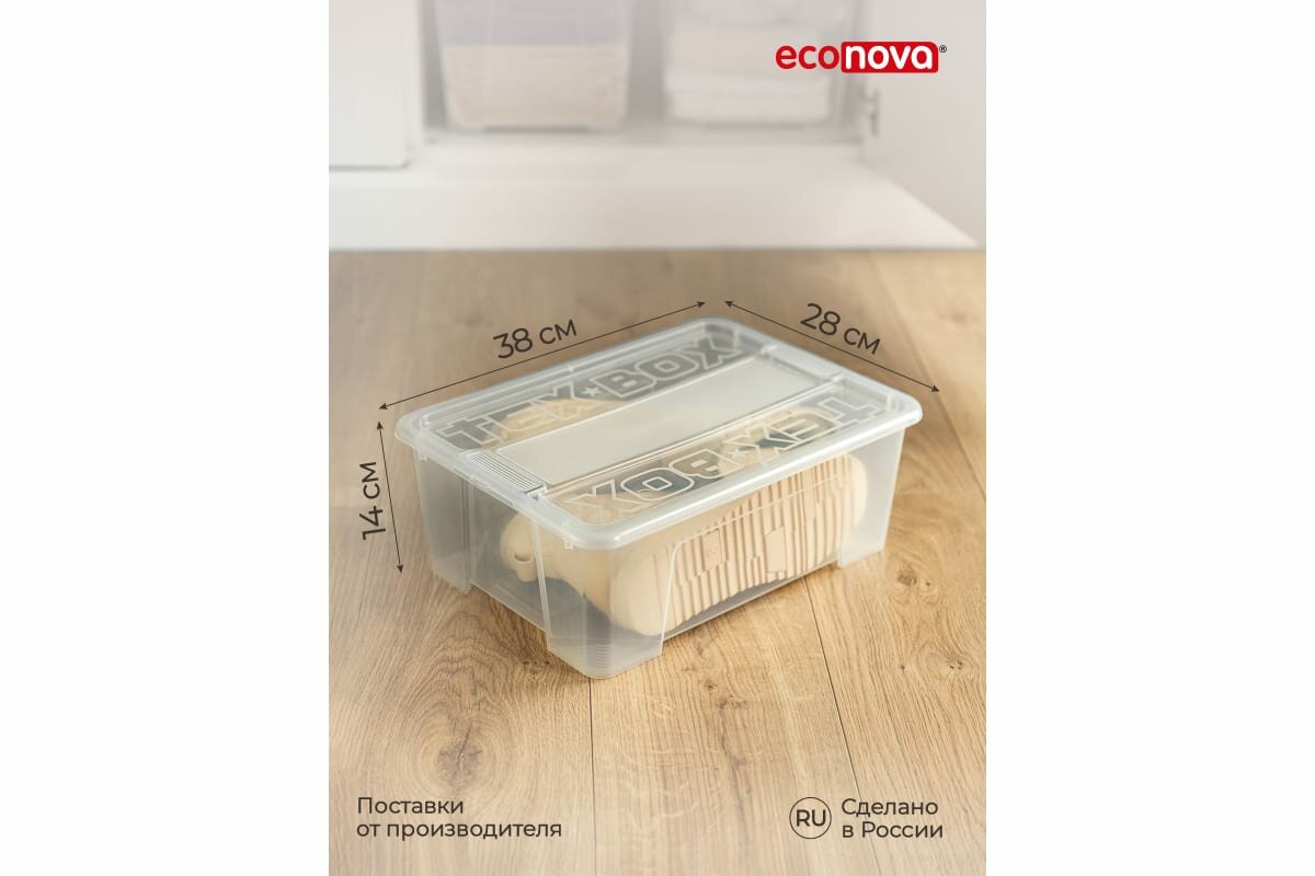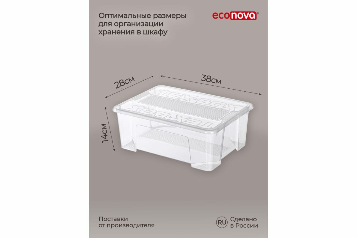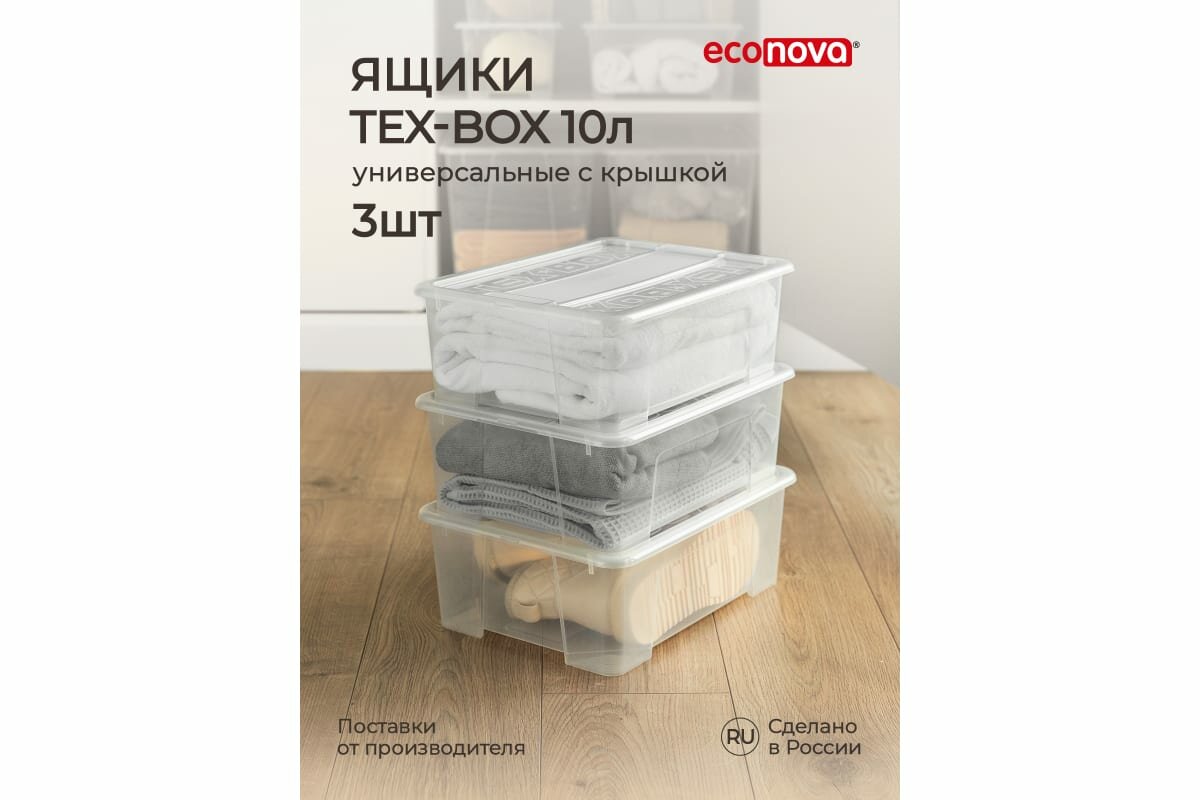 Комплект ящиков для хранения с крышкой Econova Tex-box 10 л, 3 шт, 38x28x14 см, прозрачный 43429260122