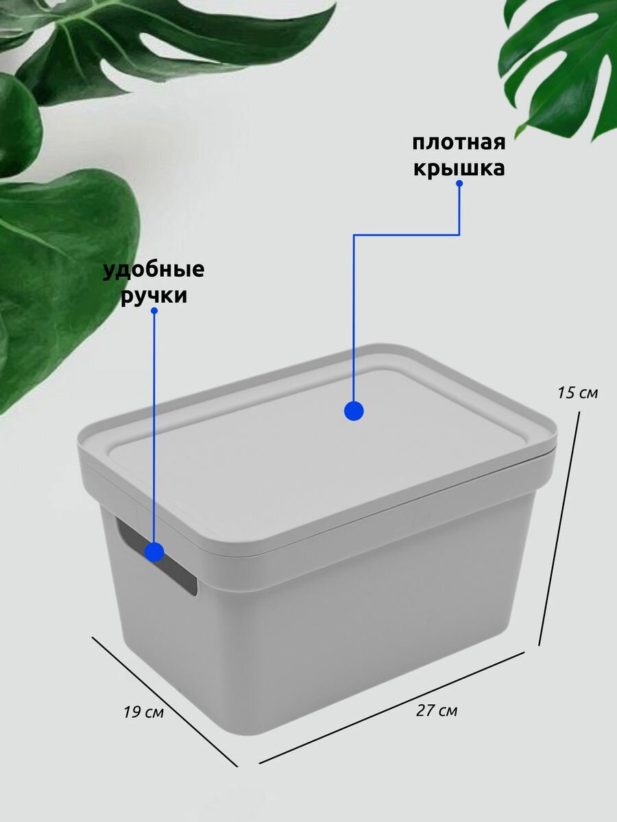 Коробка для хранения Martika Фортуна 270х190х150, контейнер пластиковый для вещей с крышкой, ящик для игрушек, светло-серый