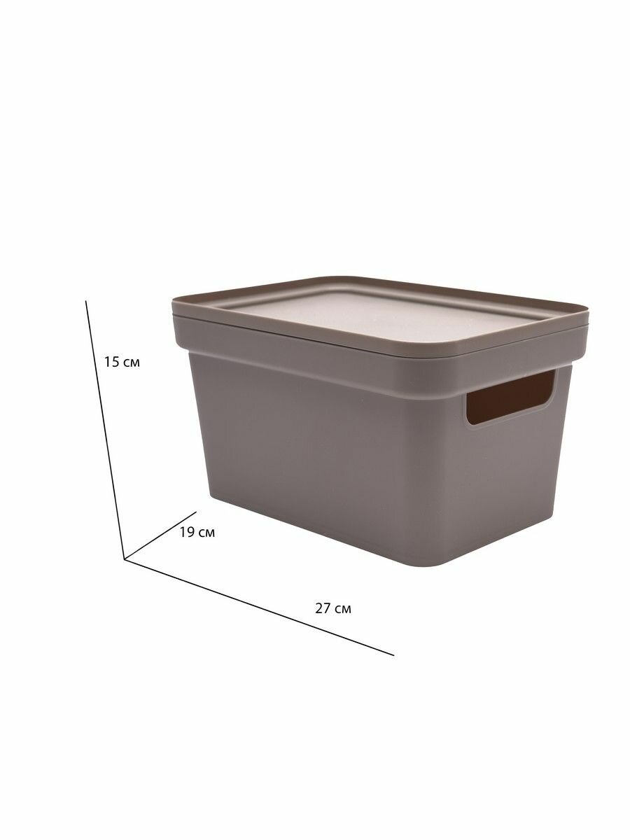 Купить Коробка для хранения Martika Фортуна 270х190х150, контейнер пластиковый для вещей с крышкой, ящик для игрушек, коричнево-серый