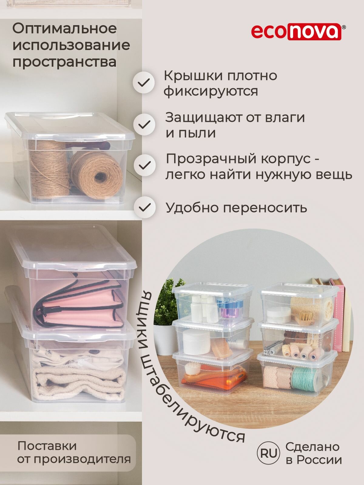 Ящик универсальный для организации хранения 2 литра (Прозрачный), Econova
