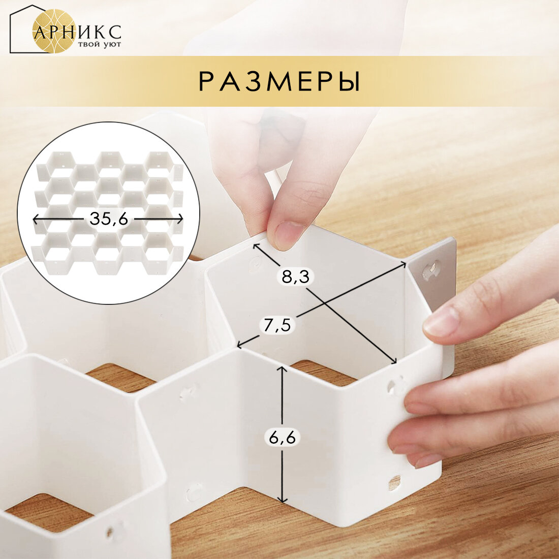 Разделители ящиков "соты", органайзер для хранения вещей, набор из 18-ти ячеек, 35х34х7см, цвет: белый интересное:
