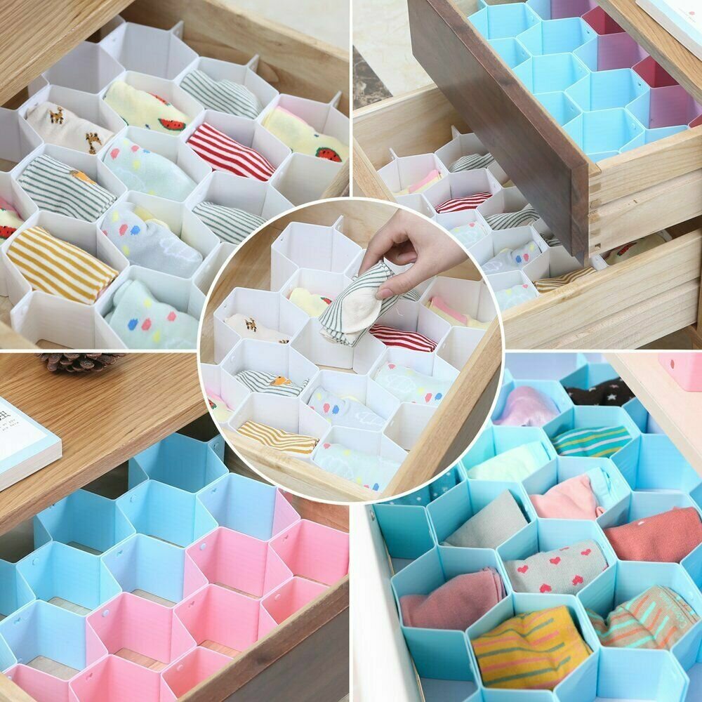 Разделители ящиков "соты", органайзер для хранения вещей, набор из 18-ти ячеек, 35х34х7см, цвет: голубой интересное: