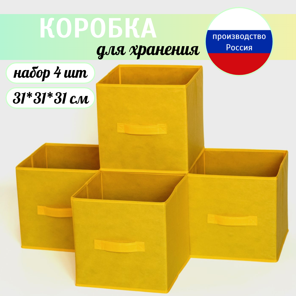СохранитьКороб для хранения стеллажный 31*31*31 см желтый. Набор из 4 штук интересное: