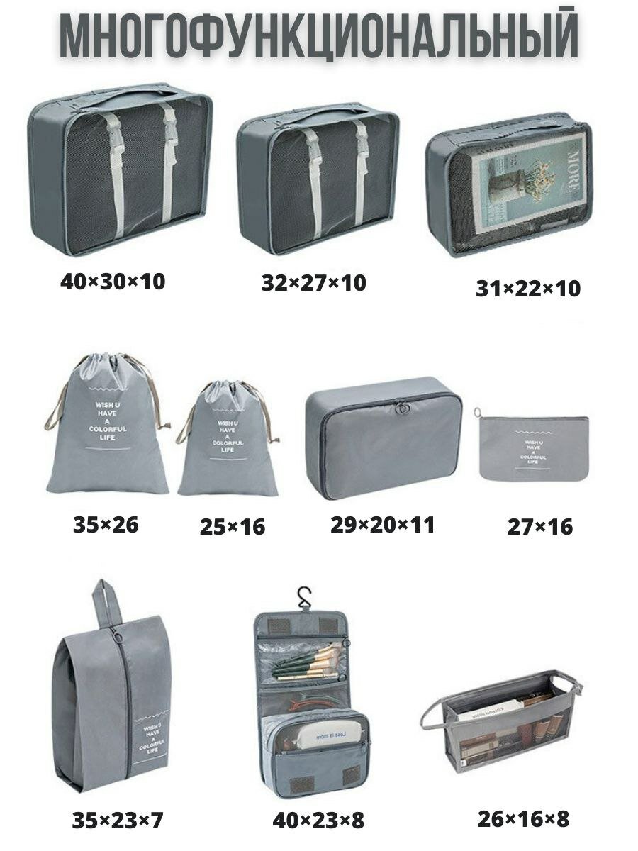 Купить Дорожный набор/ Органайзер для хранения вещей в чемодане серый 10 шт.