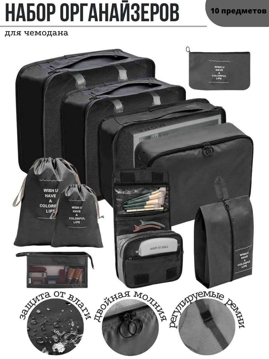Купить Дорожный набор/ Органайзер для хранения вещей в чемодане черный10 шт.