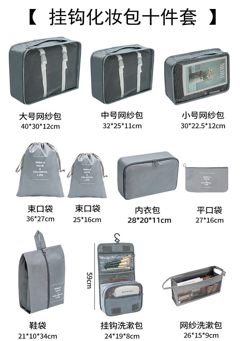 Дорожный набор/ Органайзер для хранения вещей в чемодане серый 10 шт.