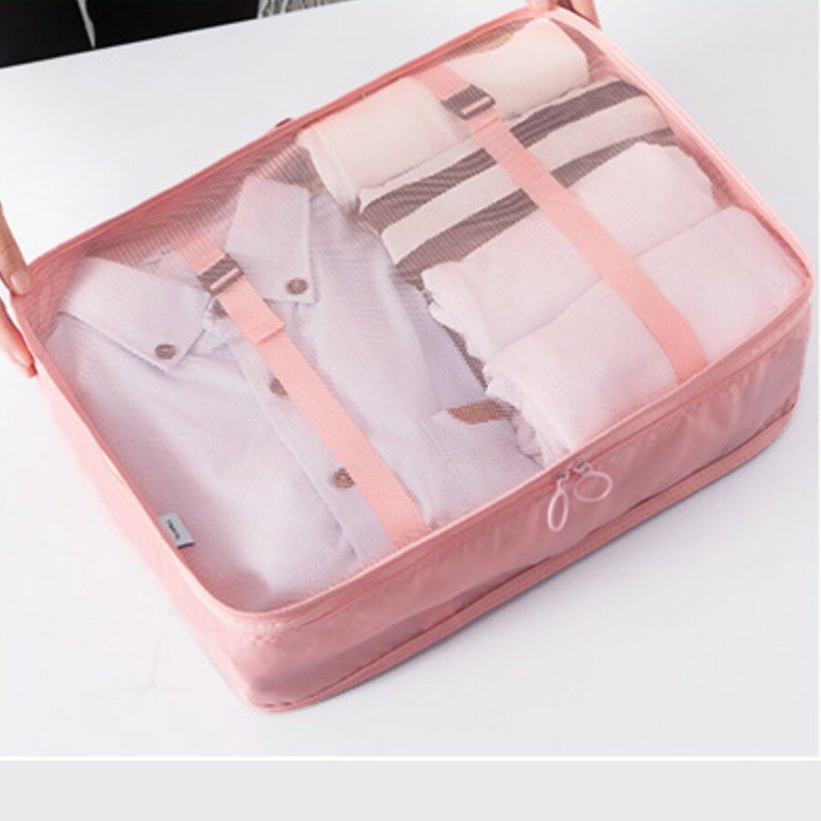 Купить Дорожный набор/ Органайзер для хранения вещей в чемодане розовый 10 шт.