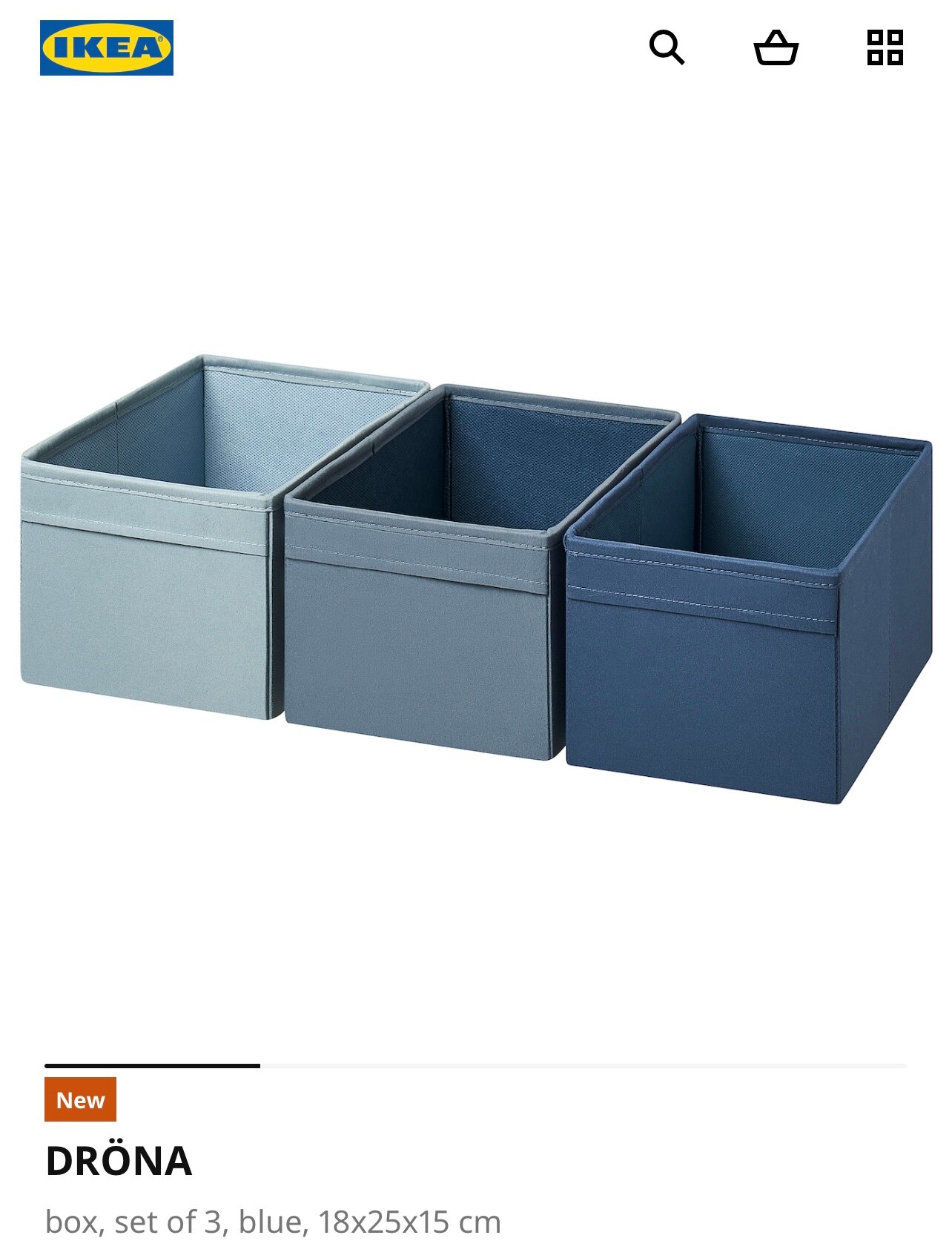 Коробка DRÖNA IKEA, набор из 3шт,синий, 18x25x15 см интересное: