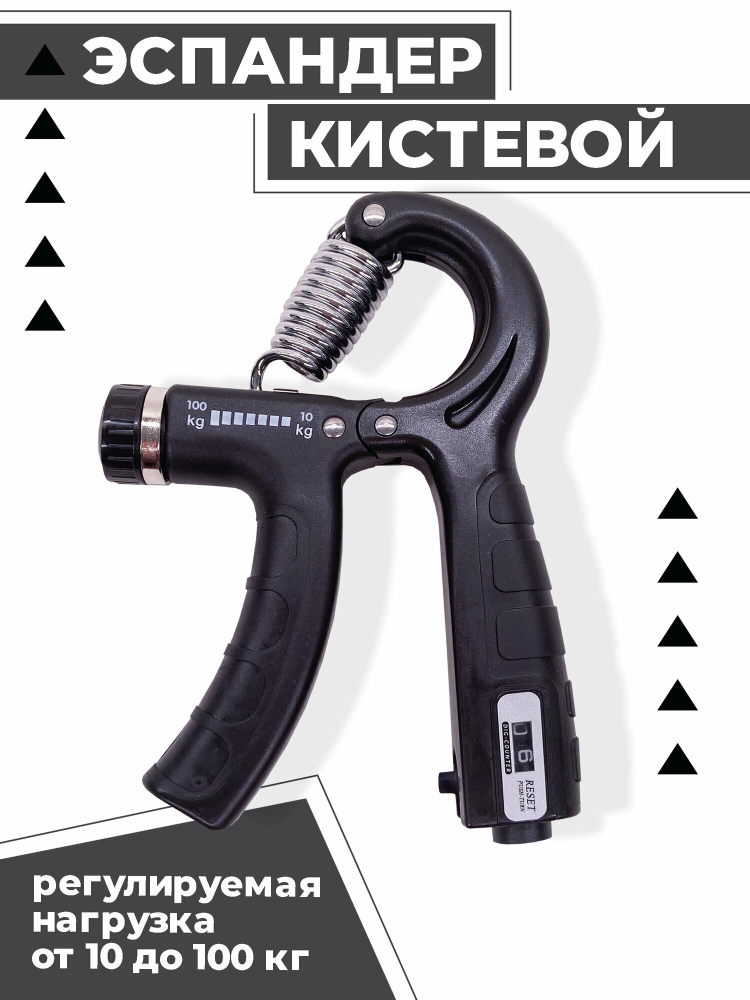 Эспандер кистевой с регулировкой нагрузки Boomshakalaka , со счетчиком, нагрузка 10-100 кг, цвет черный интересное: