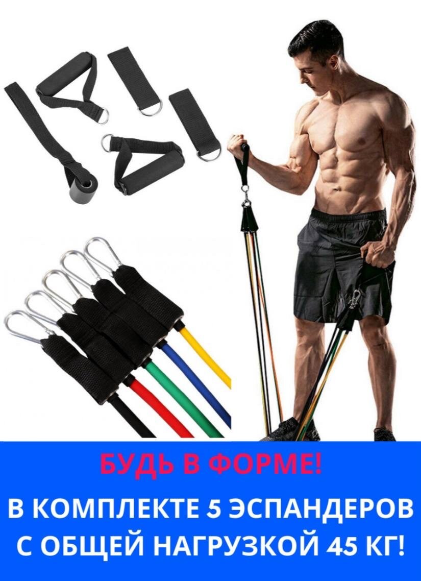 Эспандер трубчатый для тренировок / Фитнес резинки, набор Power Resistance Bands интересное: