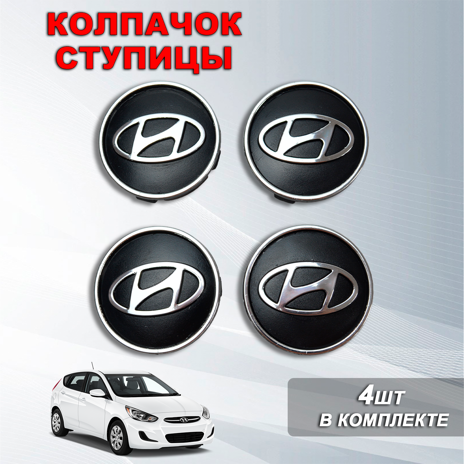 Ступичные колпачки / заглушки ступицы на литой диск Хендай / Hyundai хром, черный (60/55) интересное: