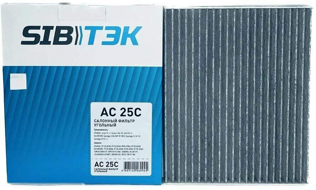 SIBTEK AC25C Фильтр салонный угольный HYUNDAI Tucson (JM),Tucson II,ix35,KIA Sportage II (JE_),Sportage III (SL),Sportage IV .
