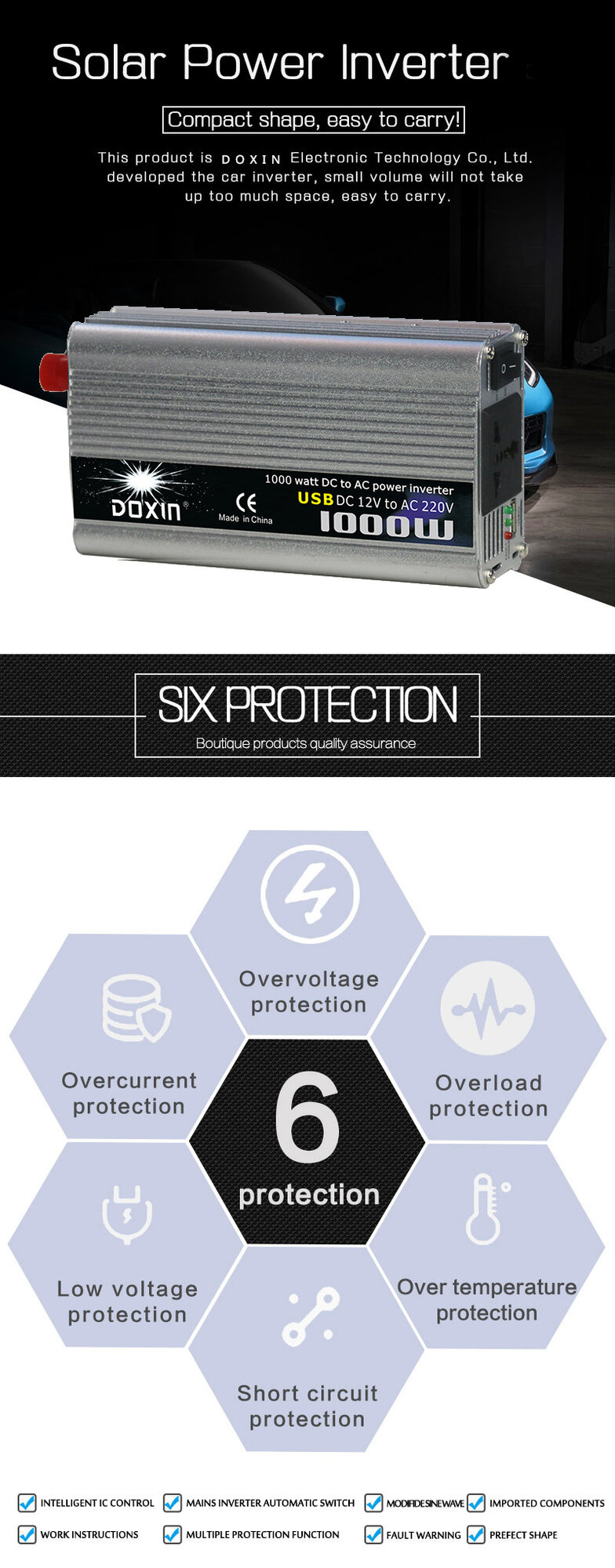 Инвертор DOXIN, 1000Вт, 24В-220В, USB-преобразователь мощности, защита от короткого замыкания интересное:
