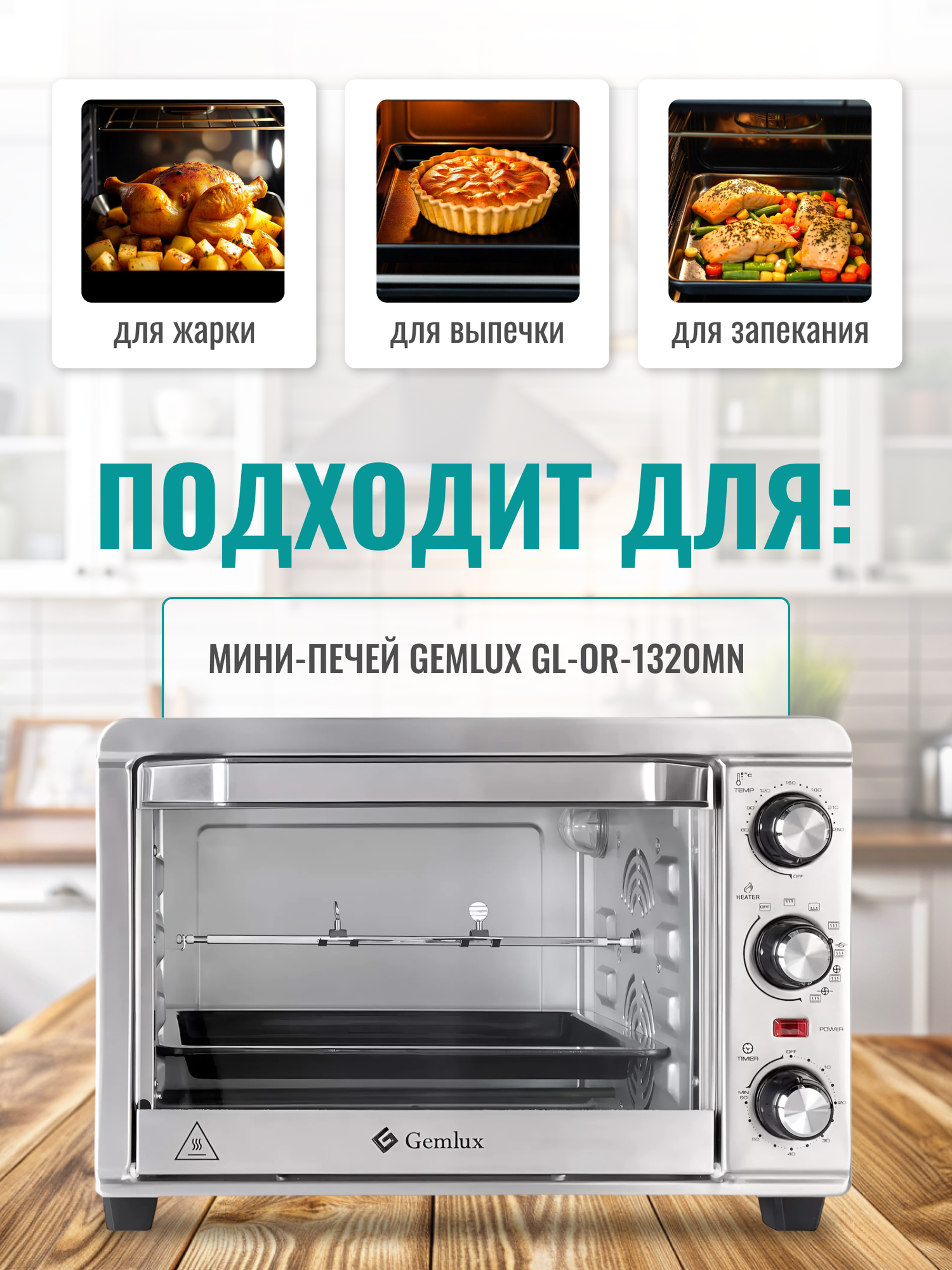 | Совместимость | конвекционные печи Gemlux GL-OR-1838 и GL-OR-1838MN |