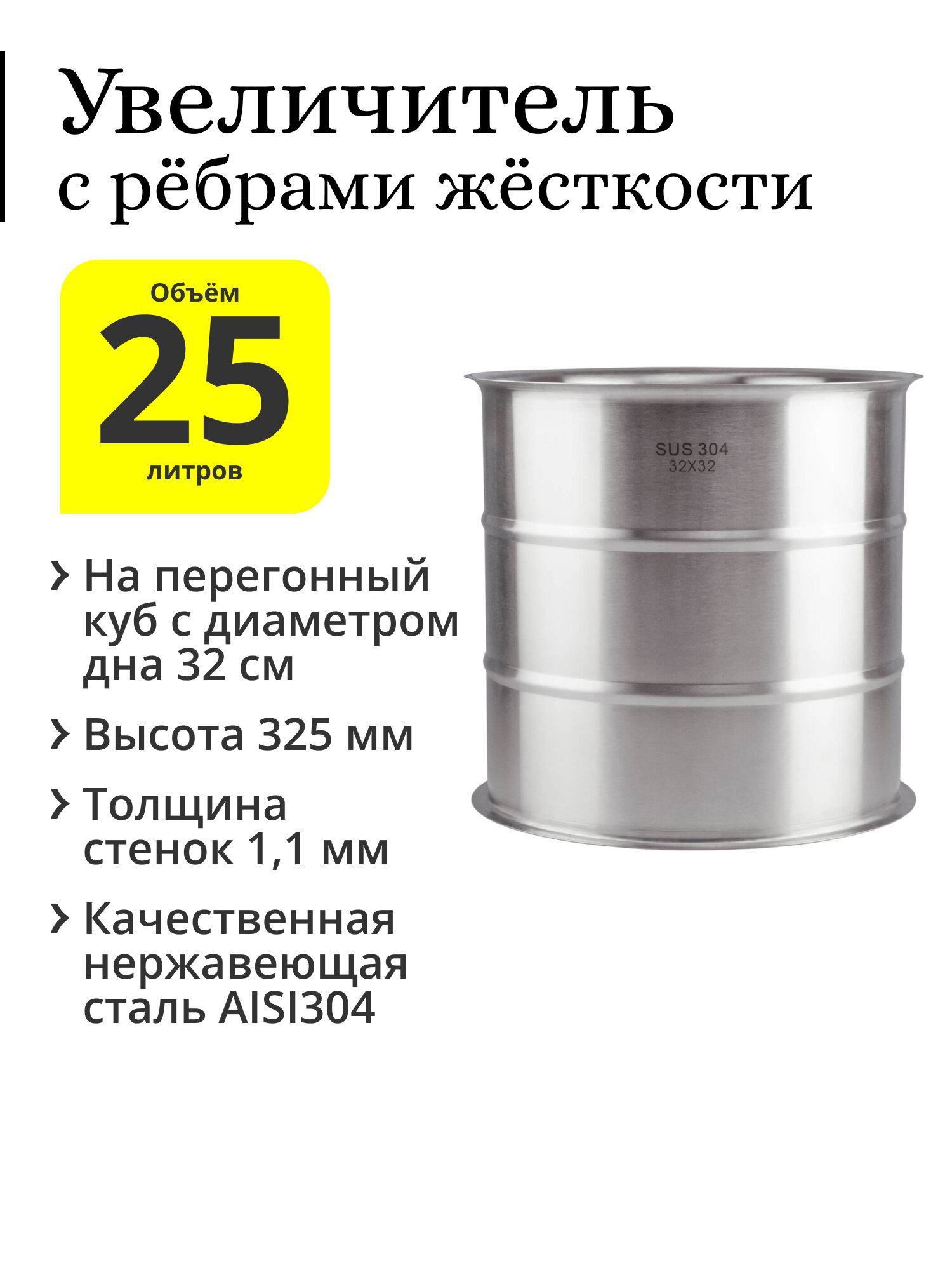 Купить Увеличитель с рёбрами жёсткости 25 литров (32×32) на перегонный куб с диаметром дна 32 см
