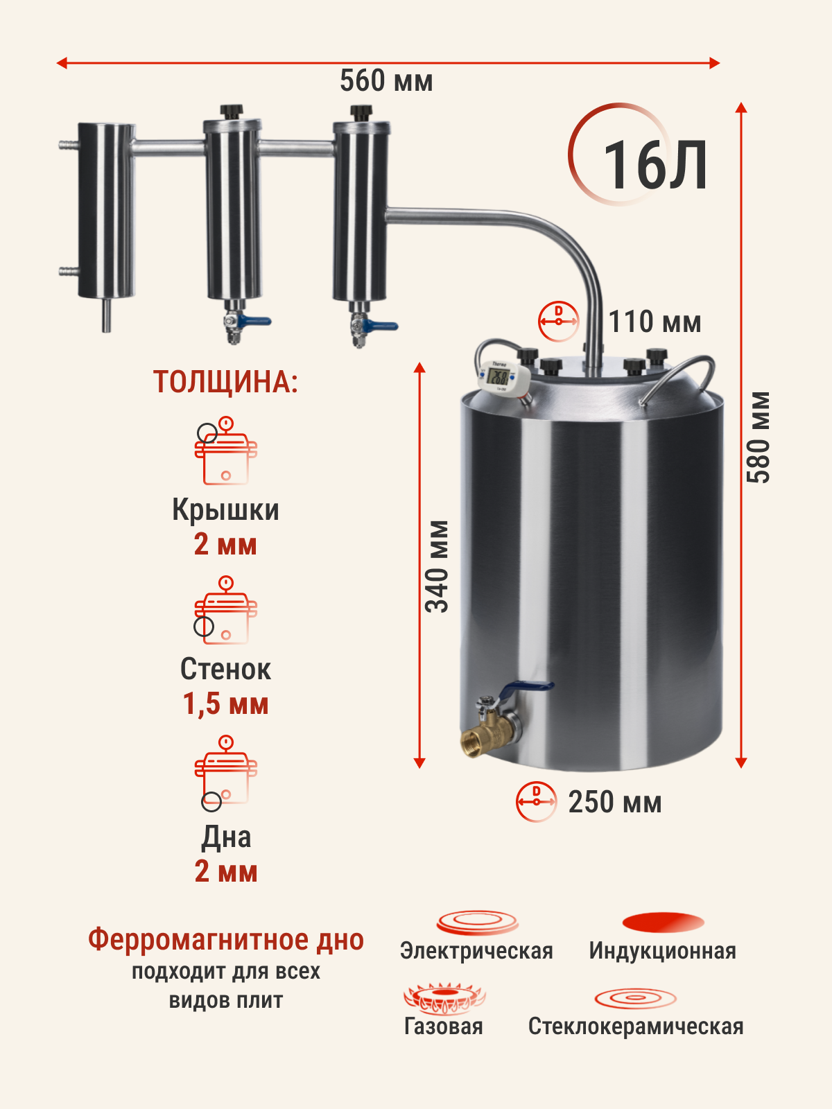 Самогонный аппарат Luxstahl Luxstahl-4 30 литров