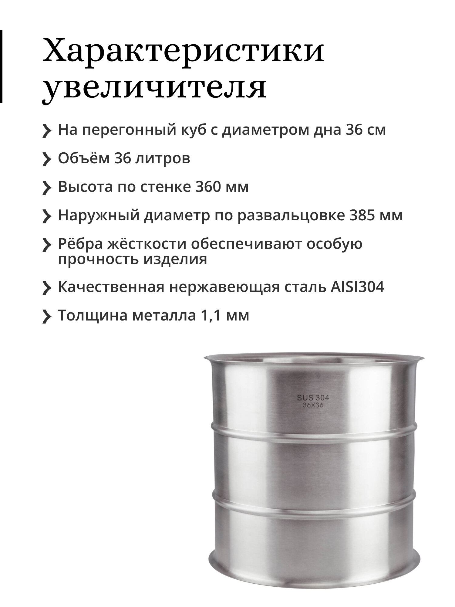 Ниже Вы можете прочитать отзывы на Увеличитель с рёбрами жёсткости 36 литров (36×36) на перегонный куб с диаметром дна 36 см, ознакомится с подробными характеристиками, посмотреть интересные обзоры и фотографии на Увеличитель с рёбрами жёсткости 36 литров (36×36) на перегонный куб с диаметром дна 36 см.