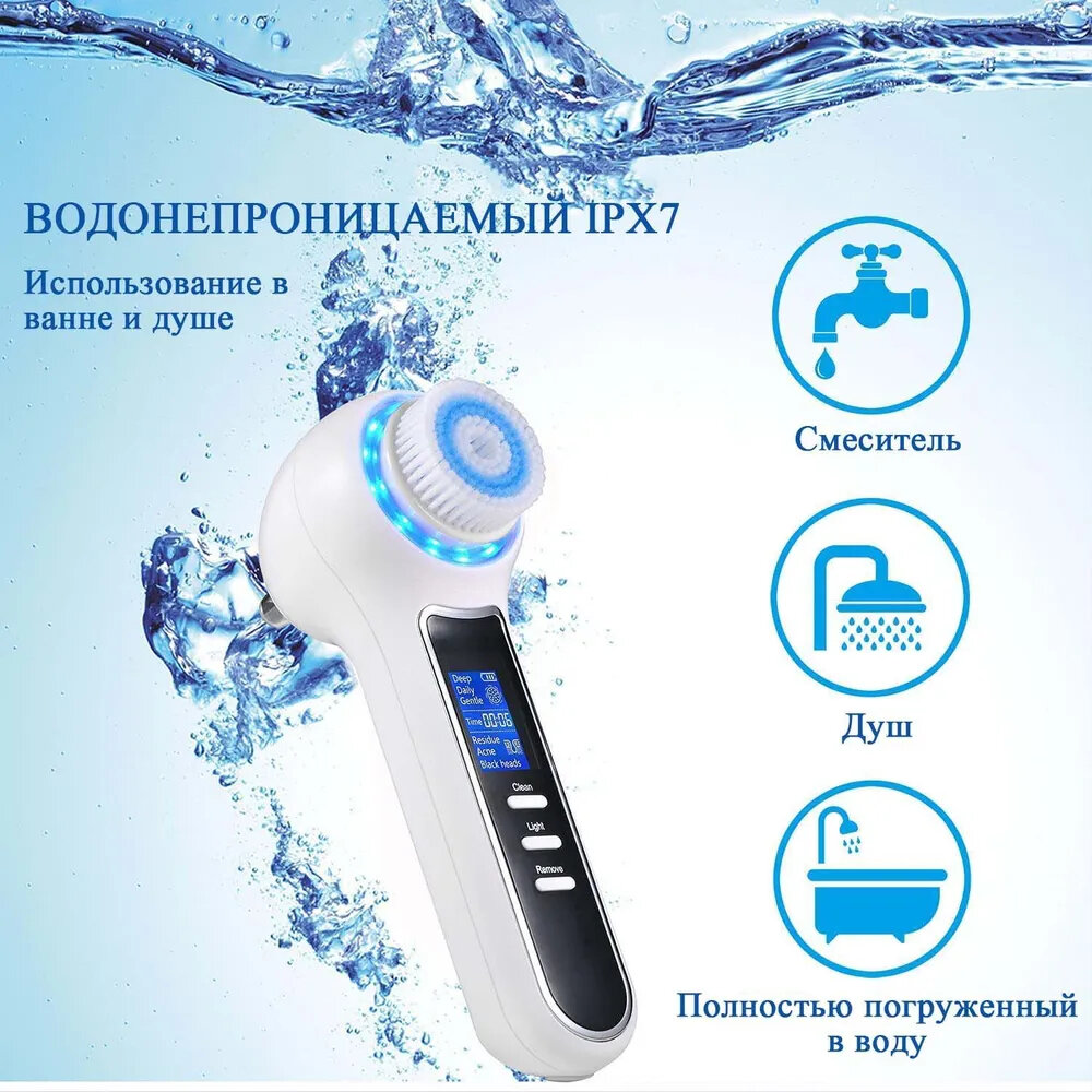 щетка для лица, Электрическая щетка для вакуумной очистки пор и LED-терапии, степень защиты от воды IPX7 интересное: