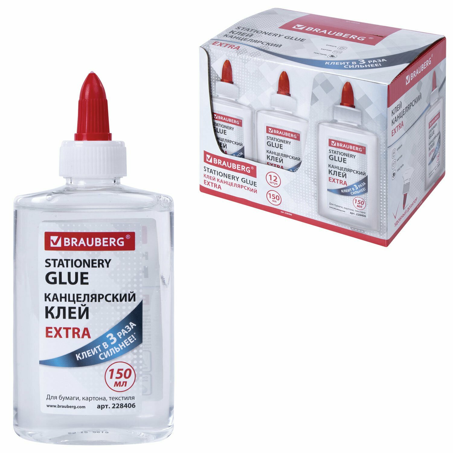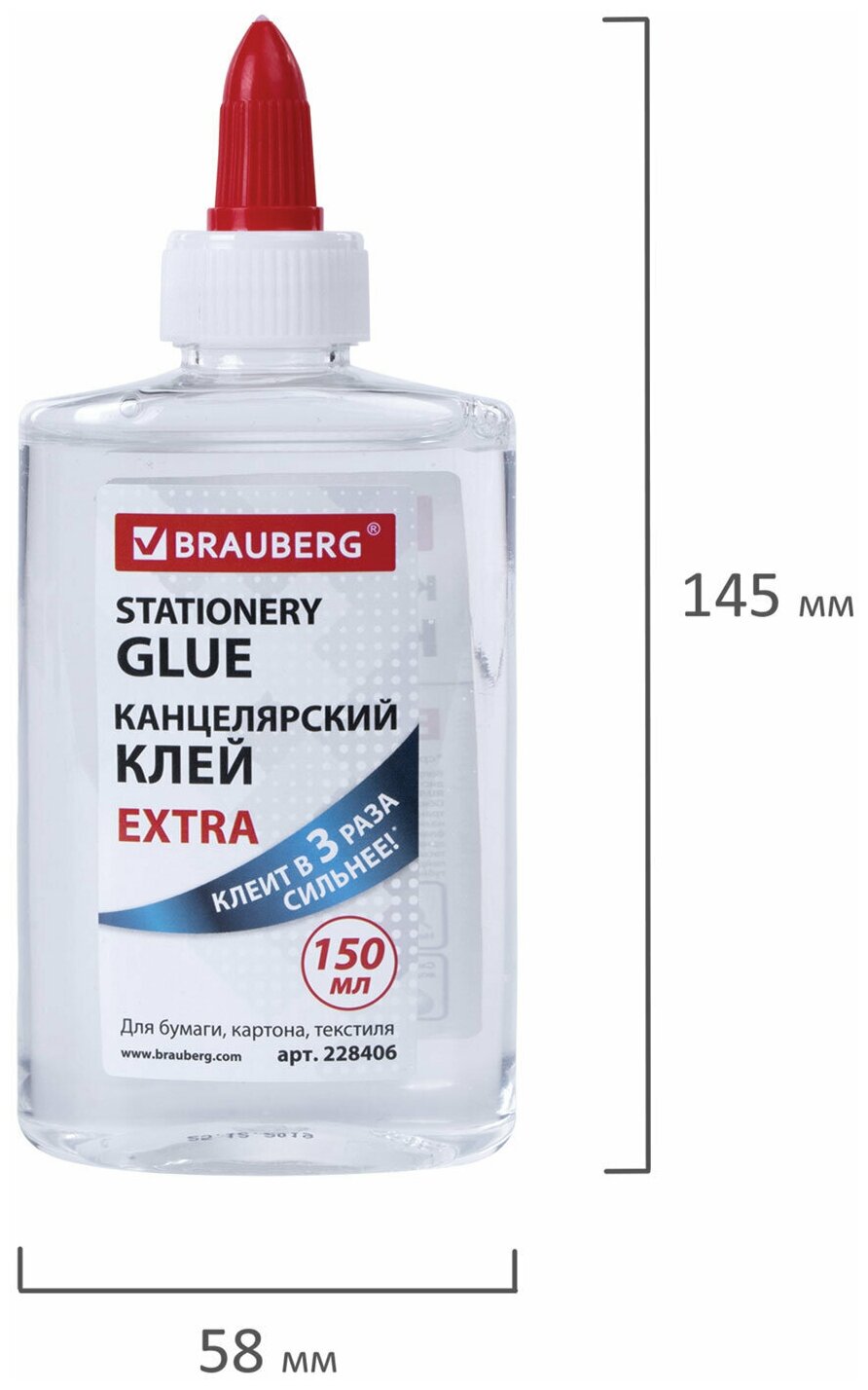 Клей канцелярский EXTRA BRAUBERG, 150 мл, с дозатором, 228406