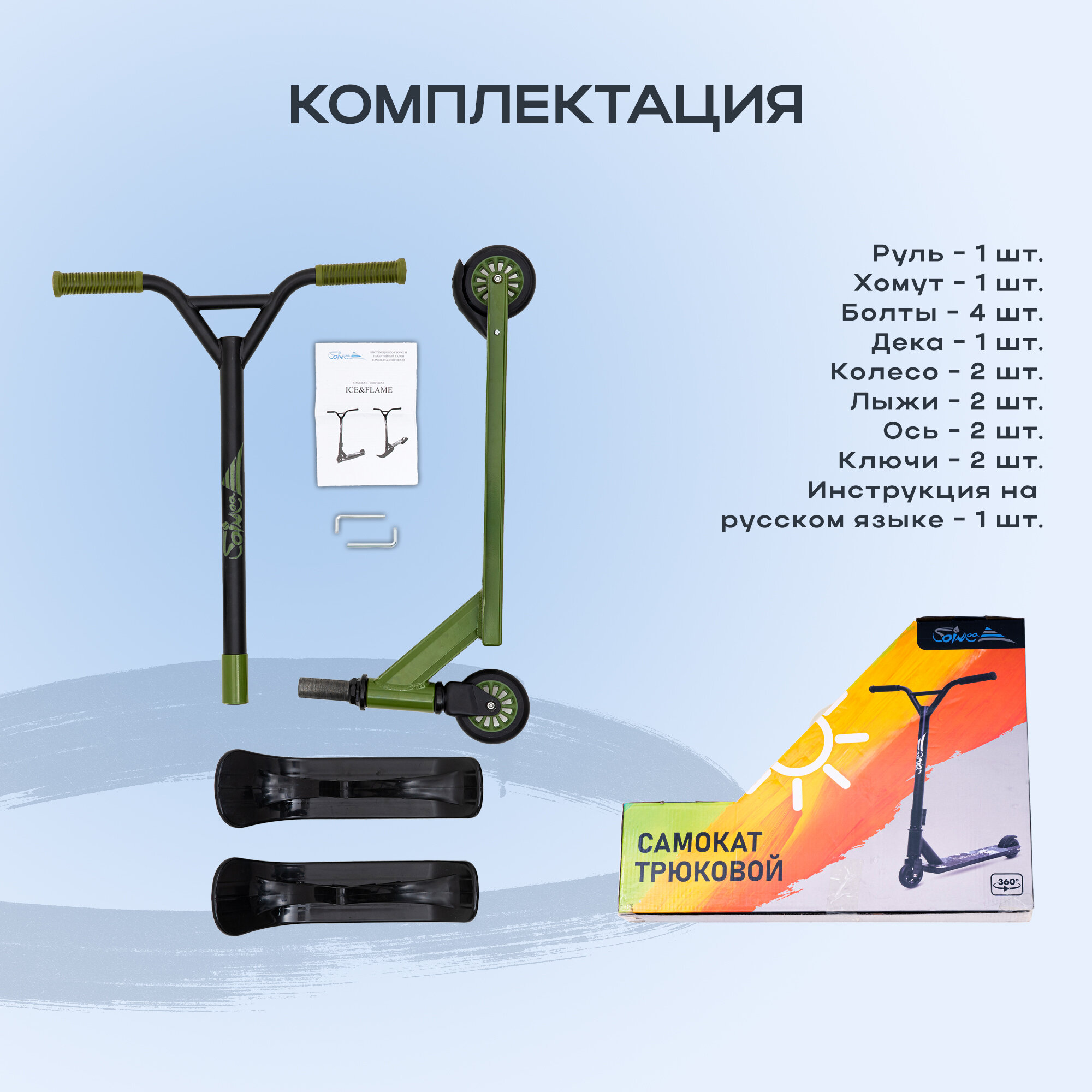 Самокат снегокат 2 в 1 с лыжами Saimaa трюковой зеленый интересное: