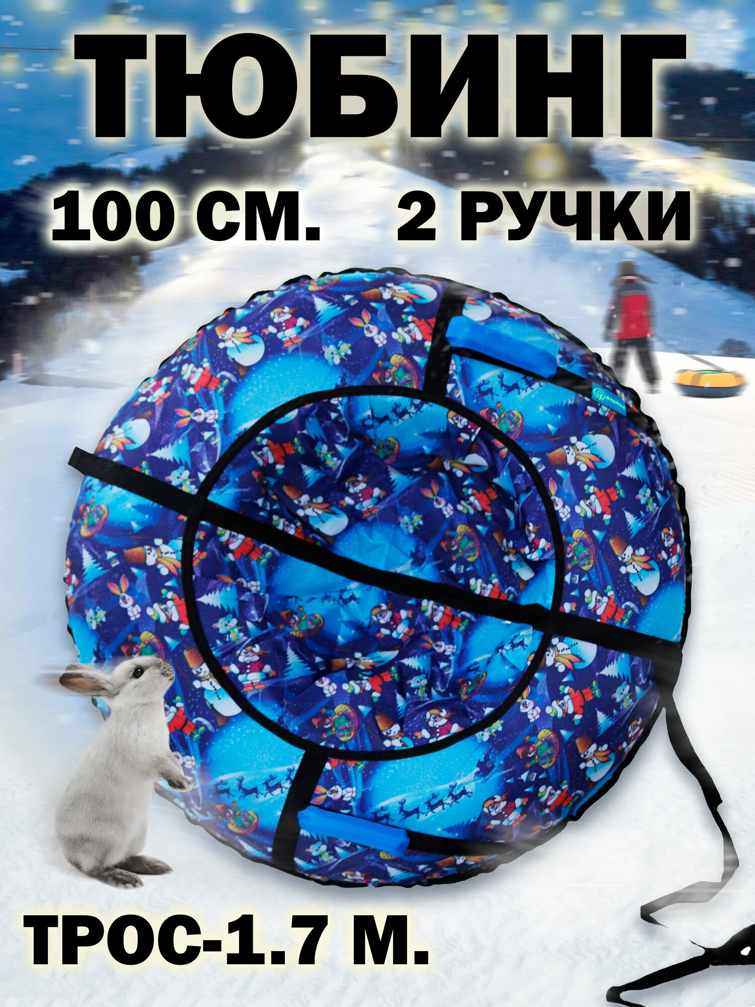 Тюбинг ватрушка 100 см с ручками и буксировочным тросом GAOKSA / Гаокса, санки детские для катания с горок геометрия