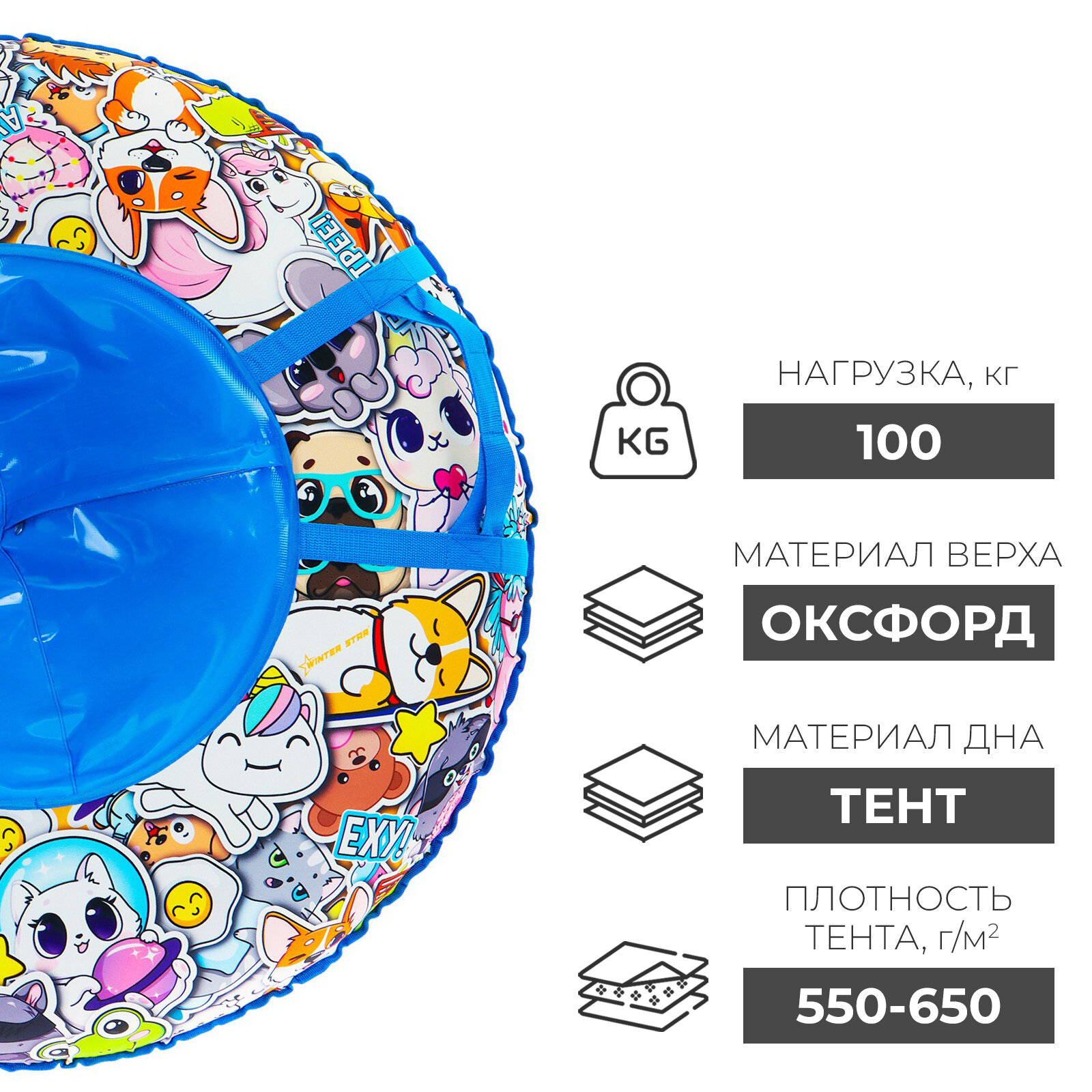 Тюбинг-ватрушка Winter Star «Стикер», диаметр чехла 100 см интересное: