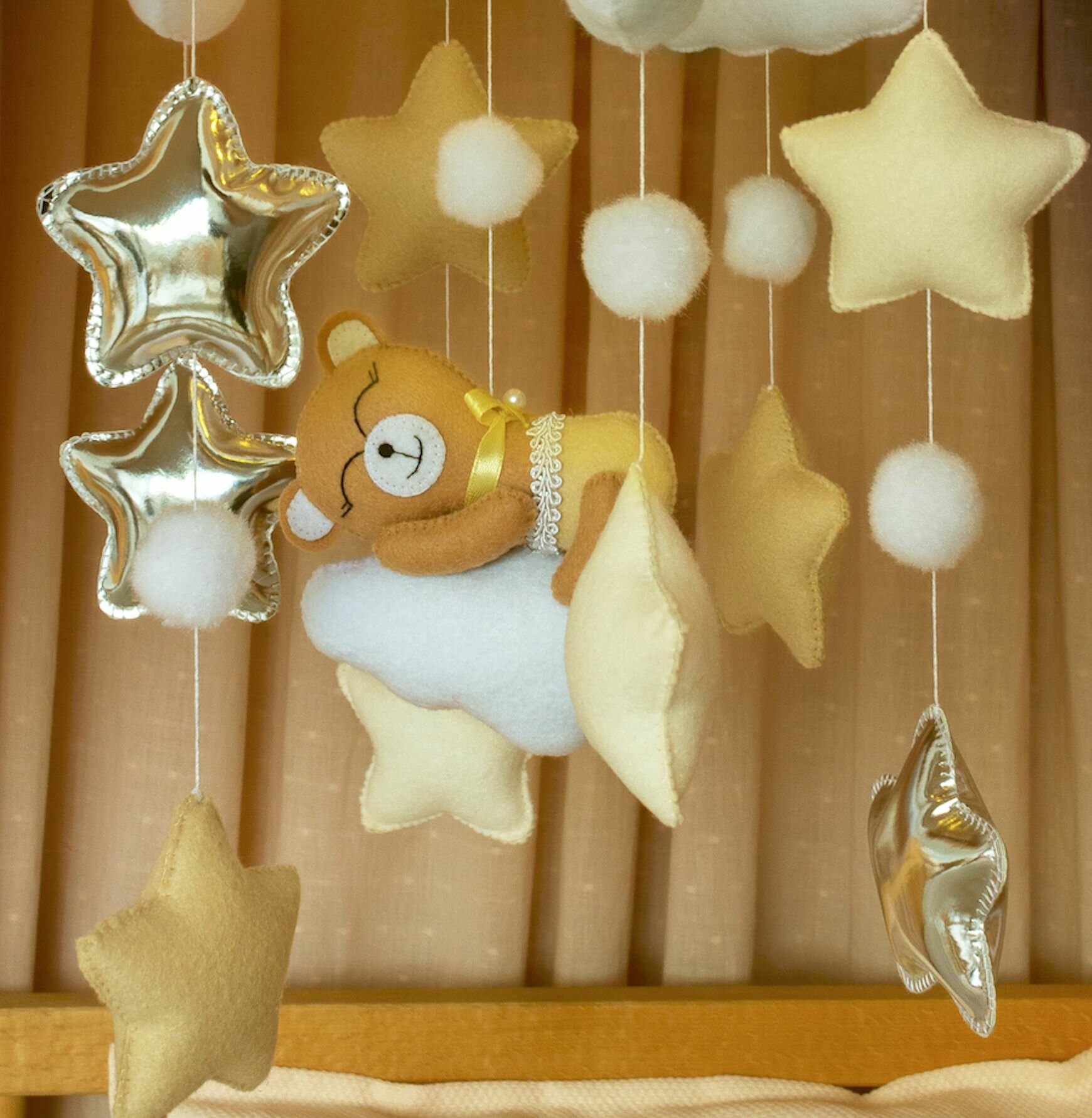 Мобиль в кроватку для новорожденных с музыкальным блоком и кронштейном