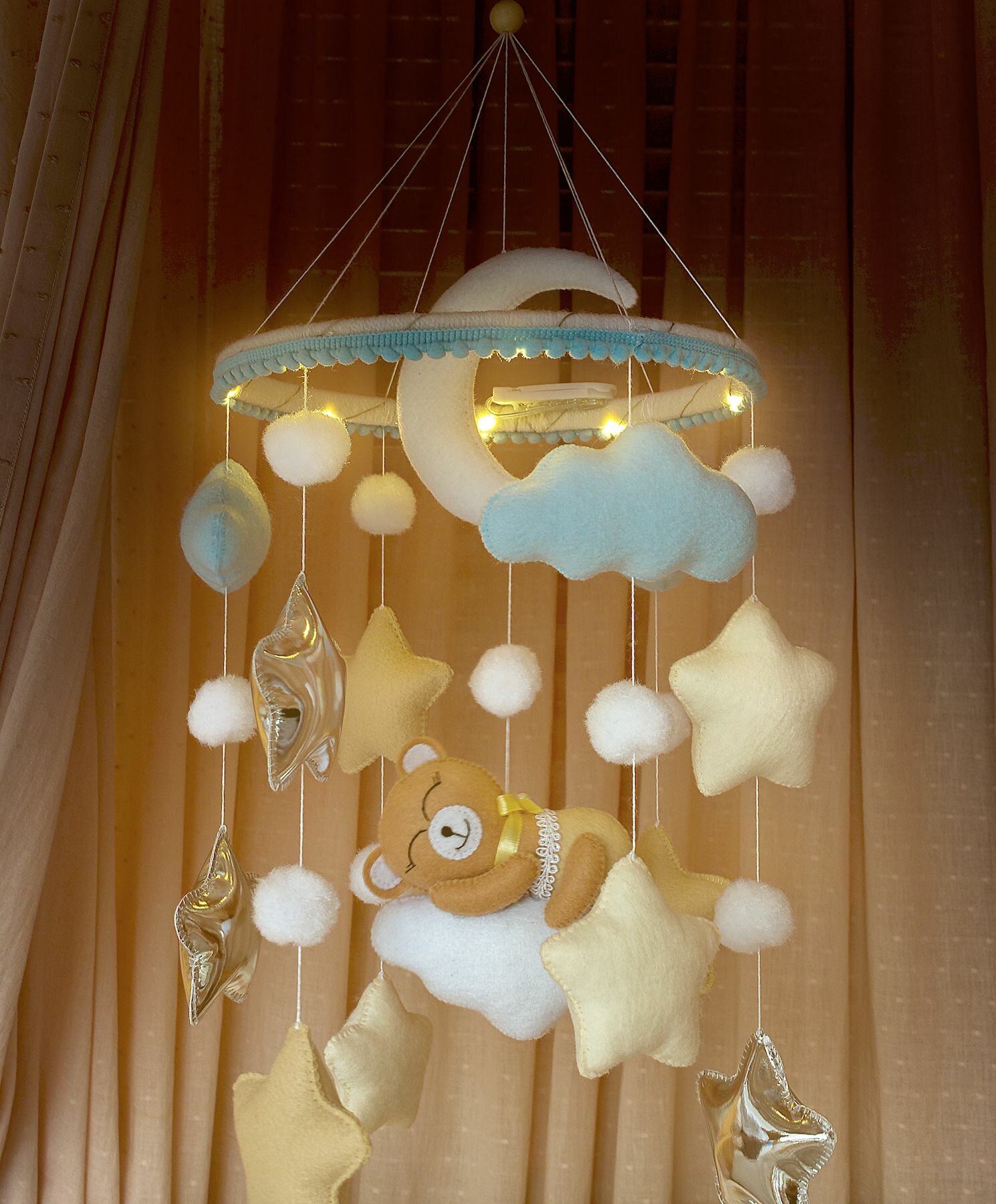 Музыкальный мобиль с кронштейном, ночником и блоком с мелодиями