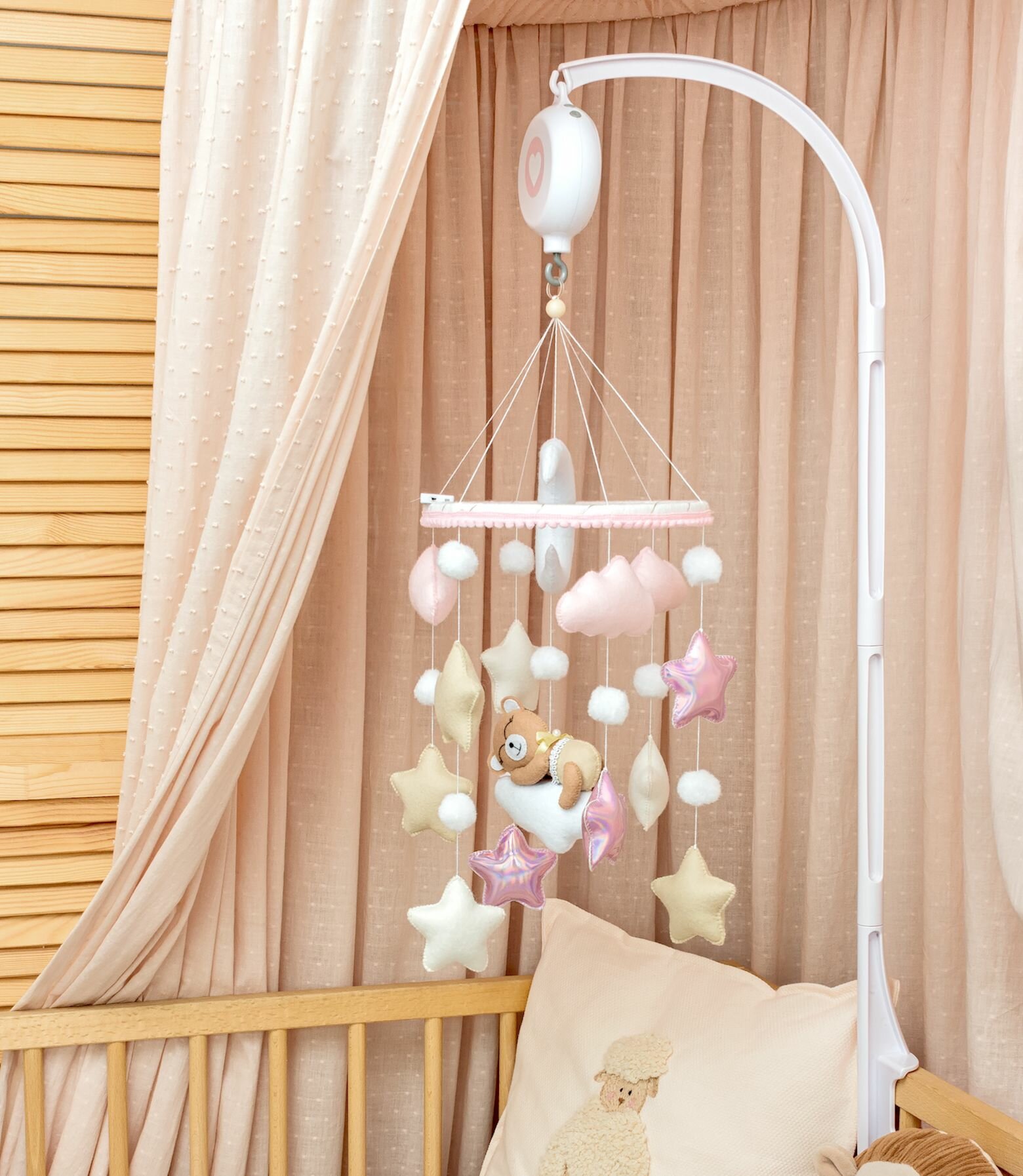Мобиль в кроватку для новорожденных с музыкальным блоком и кронштейном