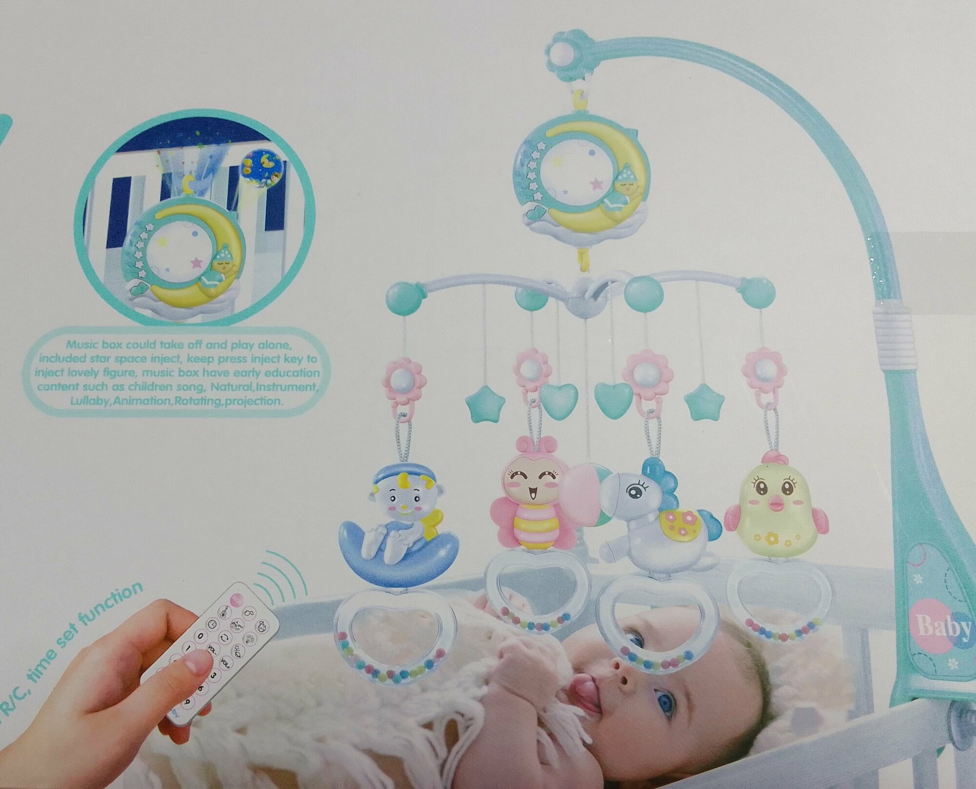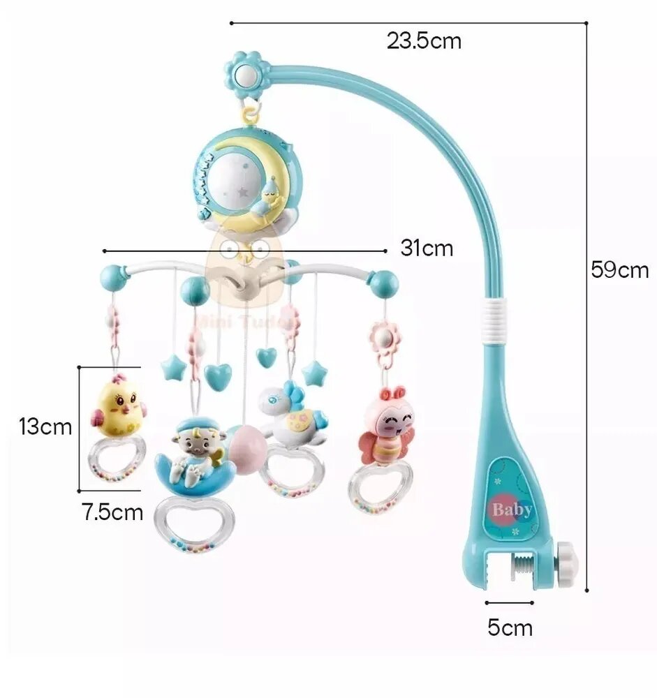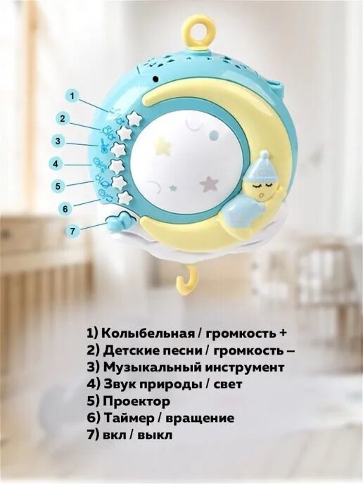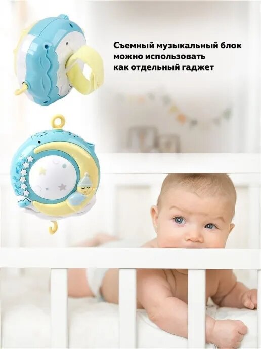 Музыкальный мобиль KONIG KIDS "Соня", 150 мел, с проектором и свет, пульт управления, B1818120008, голубой/желтый/розовый Т интересное: