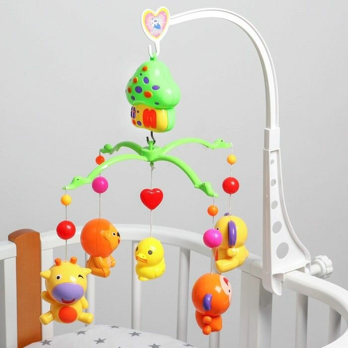 Купить Музыкальный мобиль "Домик. Джунгли" на кроватку заводной, подвесные игрушки-погремушки, развивающая карусель для малышей