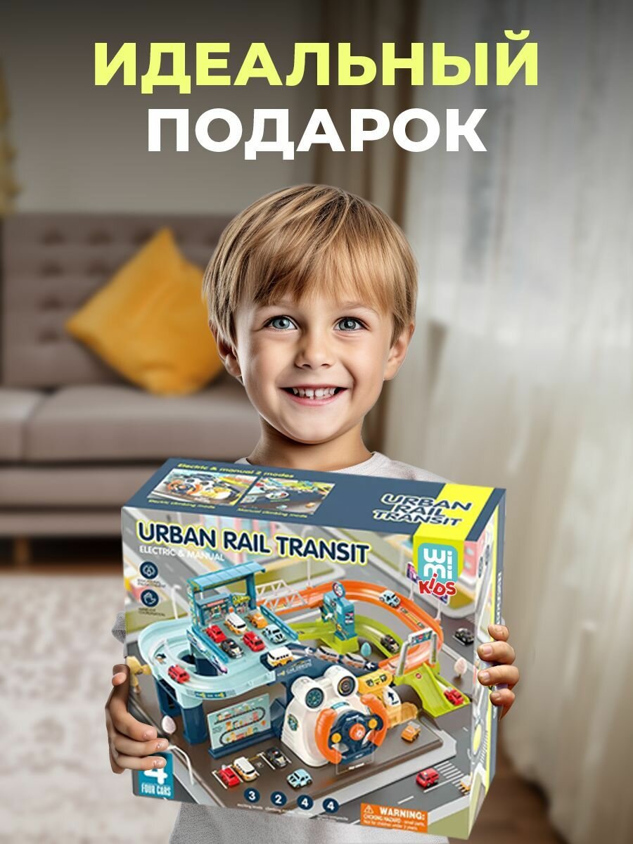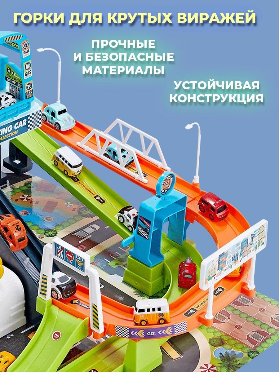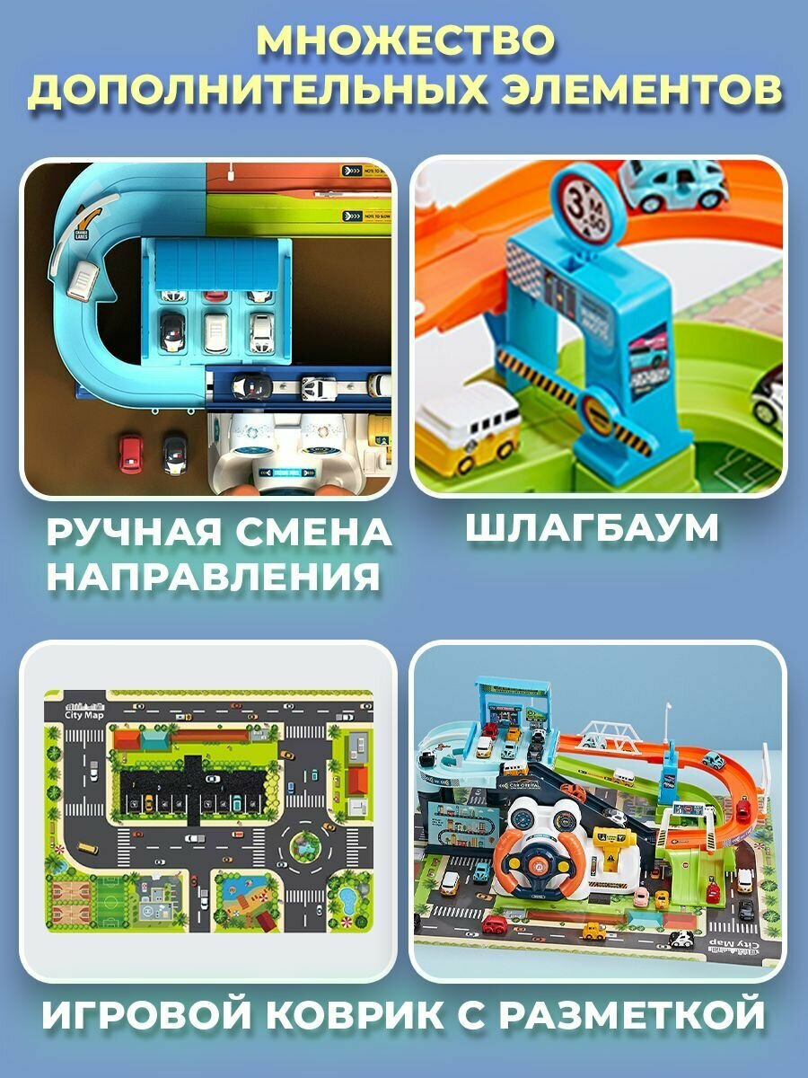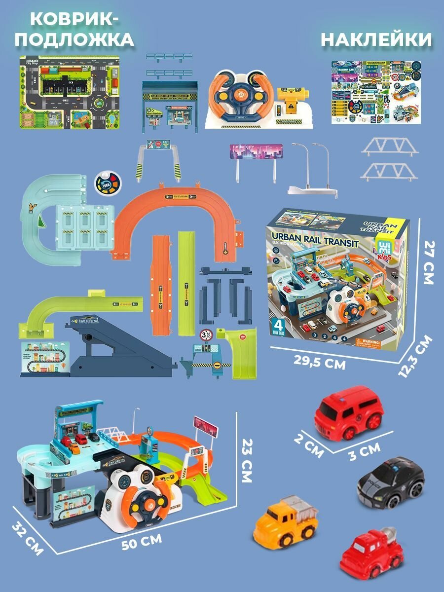 Парковка для машинок многоуровневая WiMi с музыкальным рулем, Гараж детский с горкой, Игровой набор, Паркинг интересное: