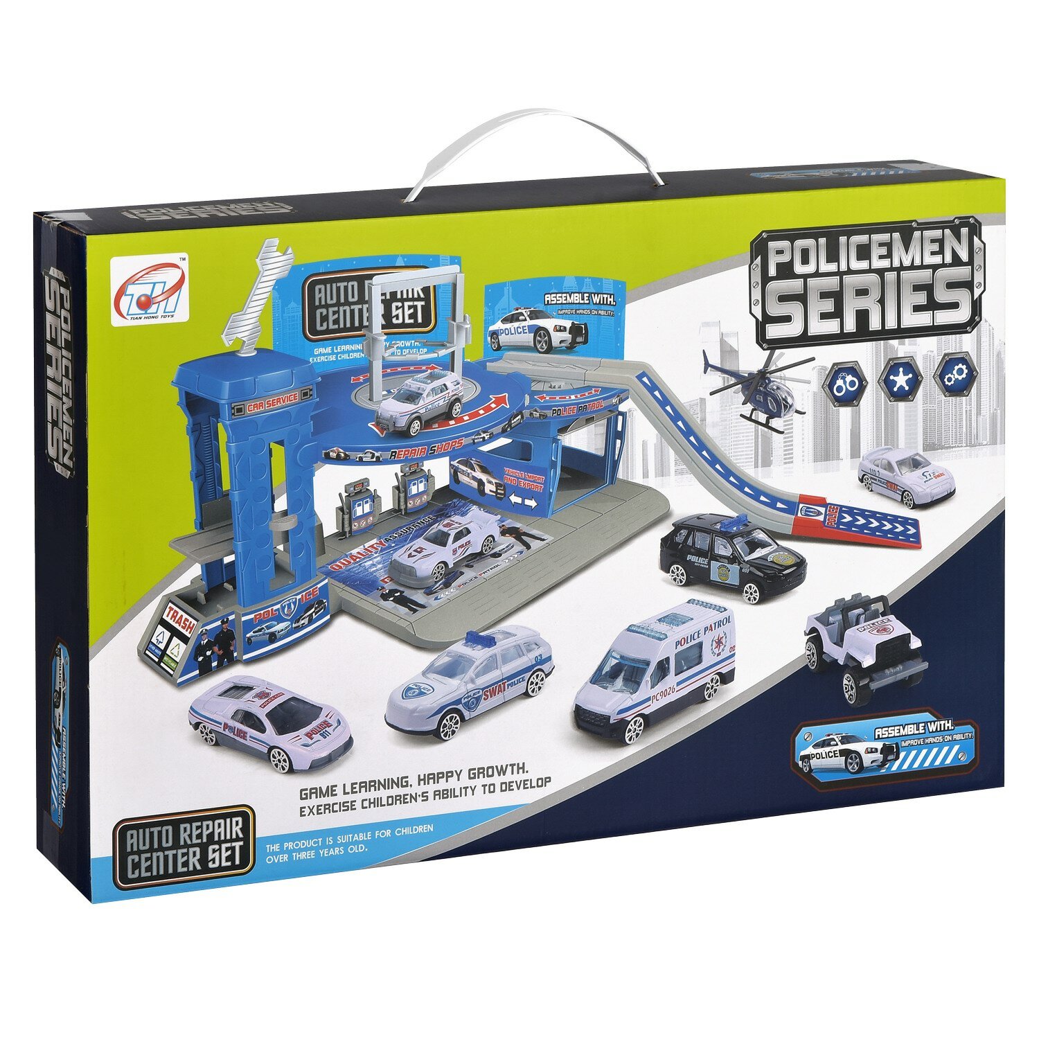 Купить Парковка-трек Junfa Полиция с 2 машинками, лифтом, аксессуарами TH8526