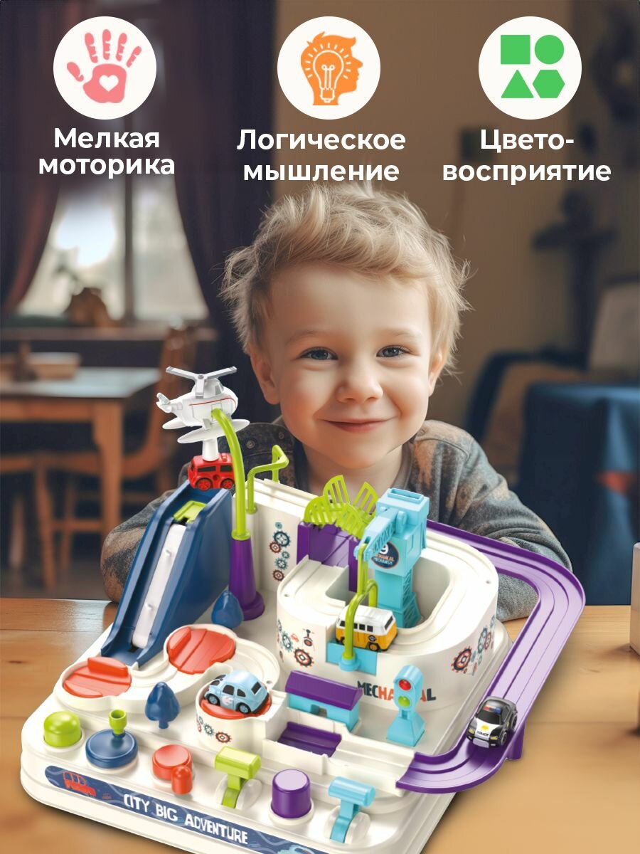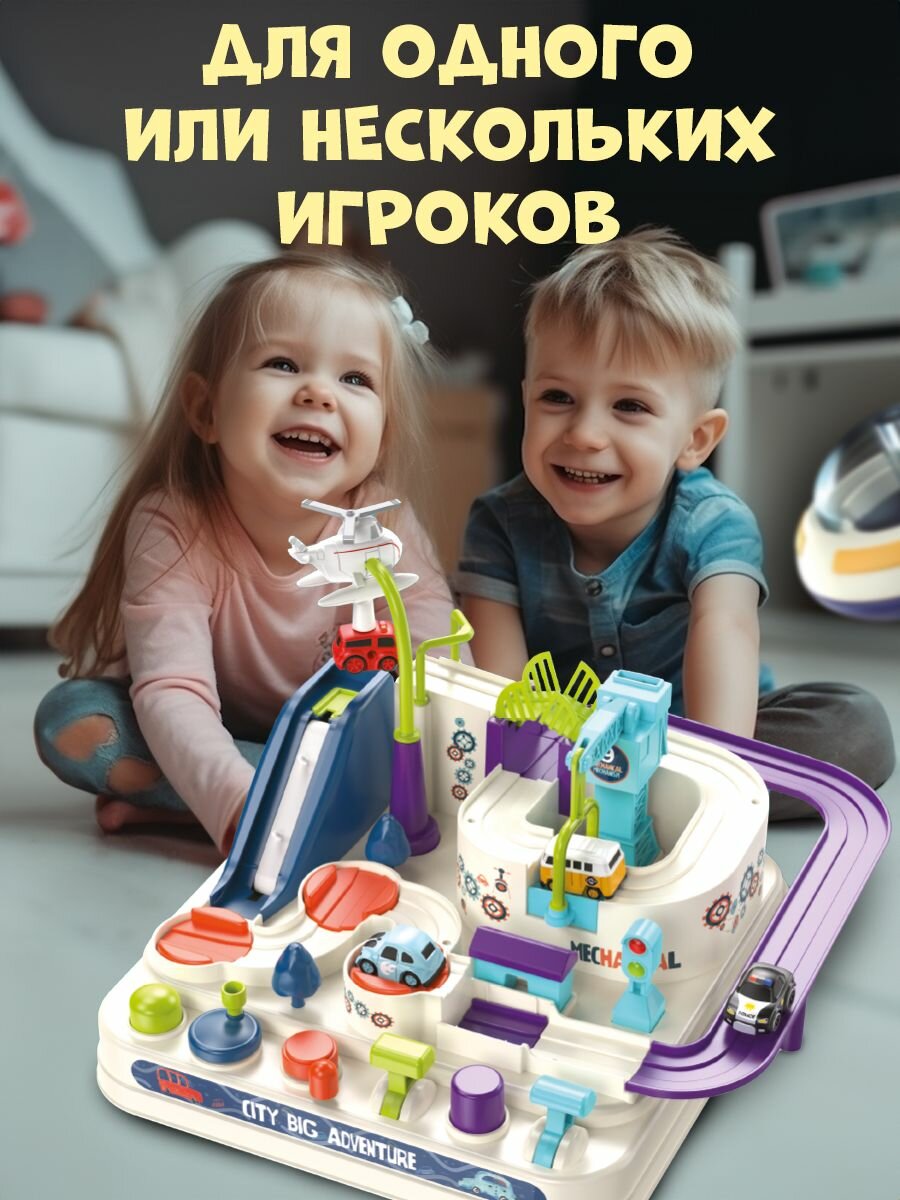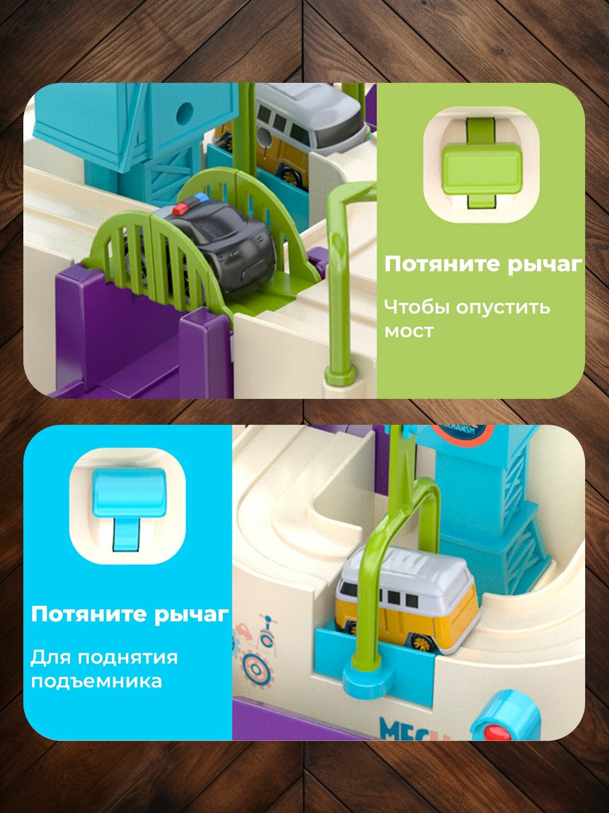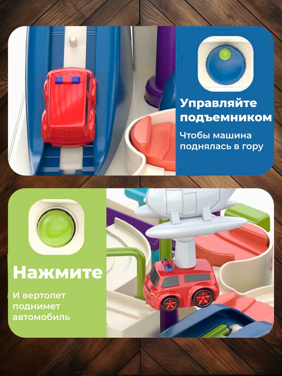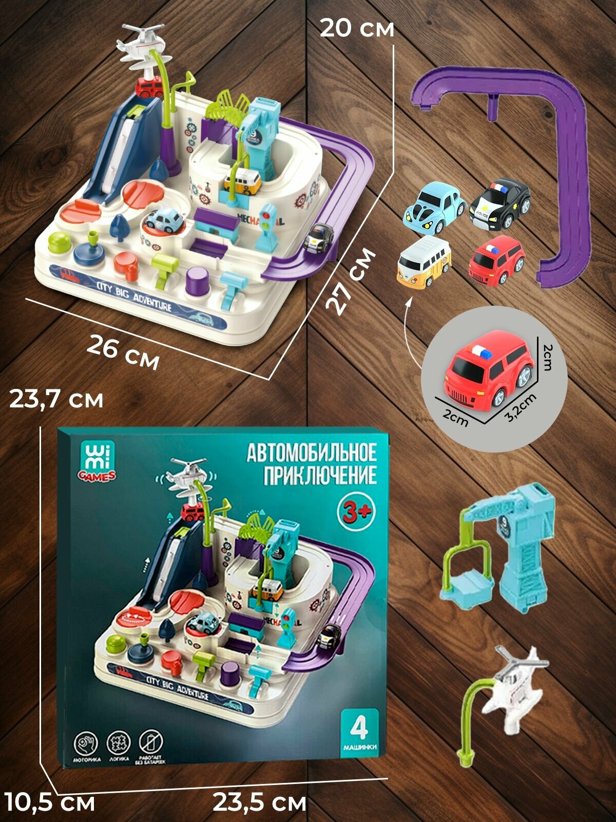 | Дополнительная информация | длина 26 см, ширина 27 см, высота 20 см, двухуровневый, гоночная трасса, механический интерактивный |