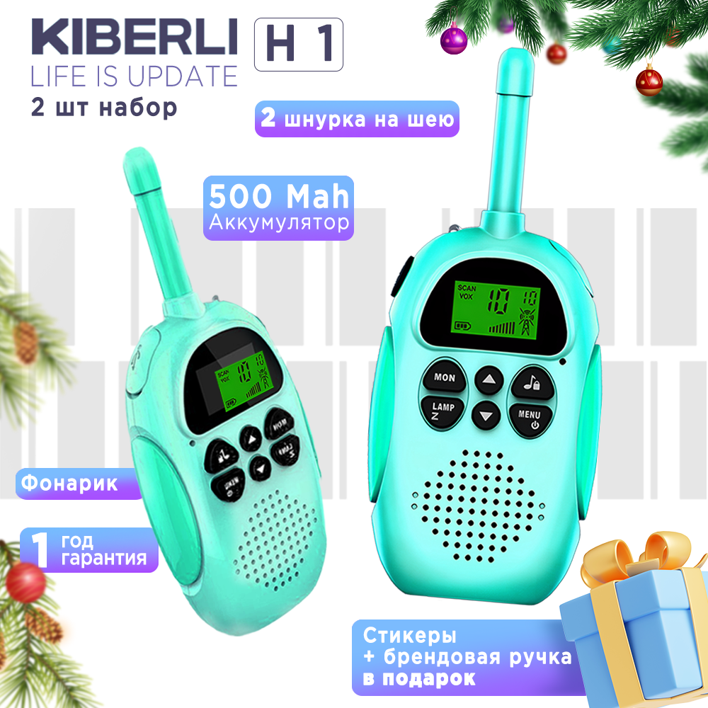 Купить KIBERLI H1 Комплект игровых раций для детей 10 мелодий, радионяня дальность 3 км. Детские рации, бирюзовый