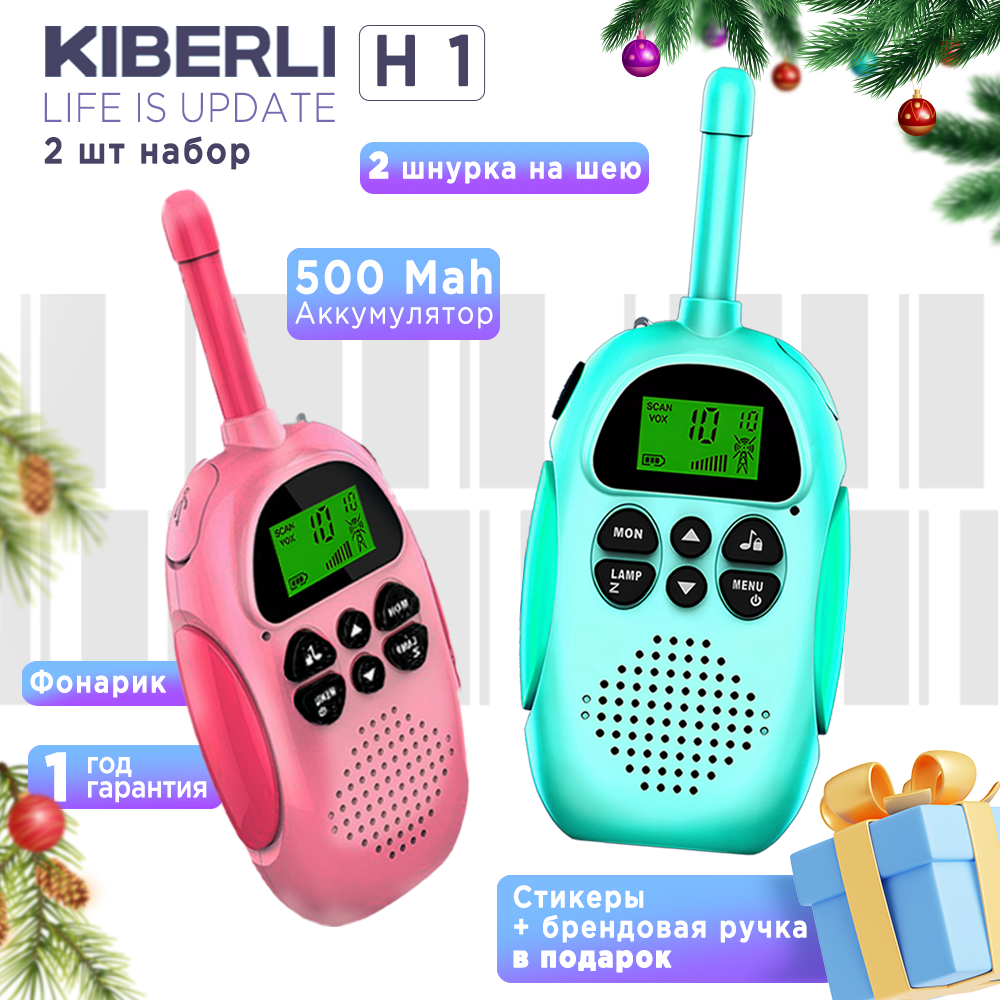 Купить KIBERLI H1 Комплект игровых раций для детей 10 мелодий, радионяня дальность 3 км. Детские рации, розовый, бирюзовый