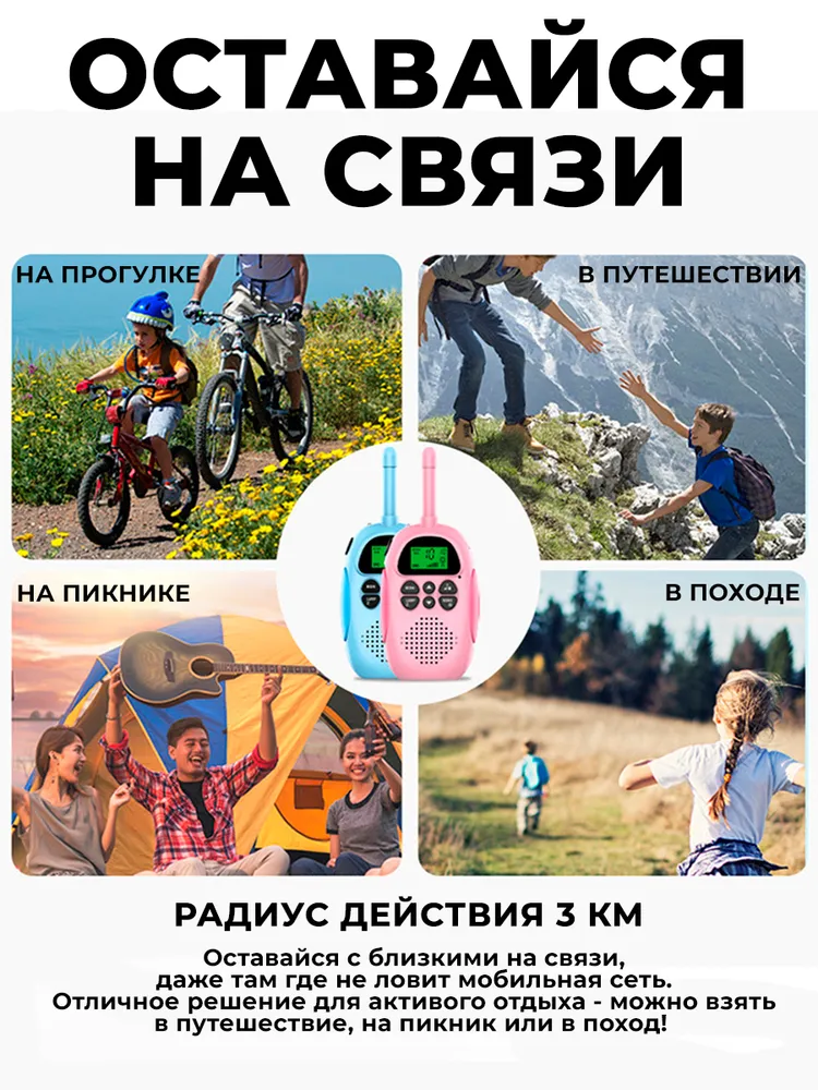 | Дополнительная информация | Рации детские для игры. 8 каналов. До 3 км радиус связи. |