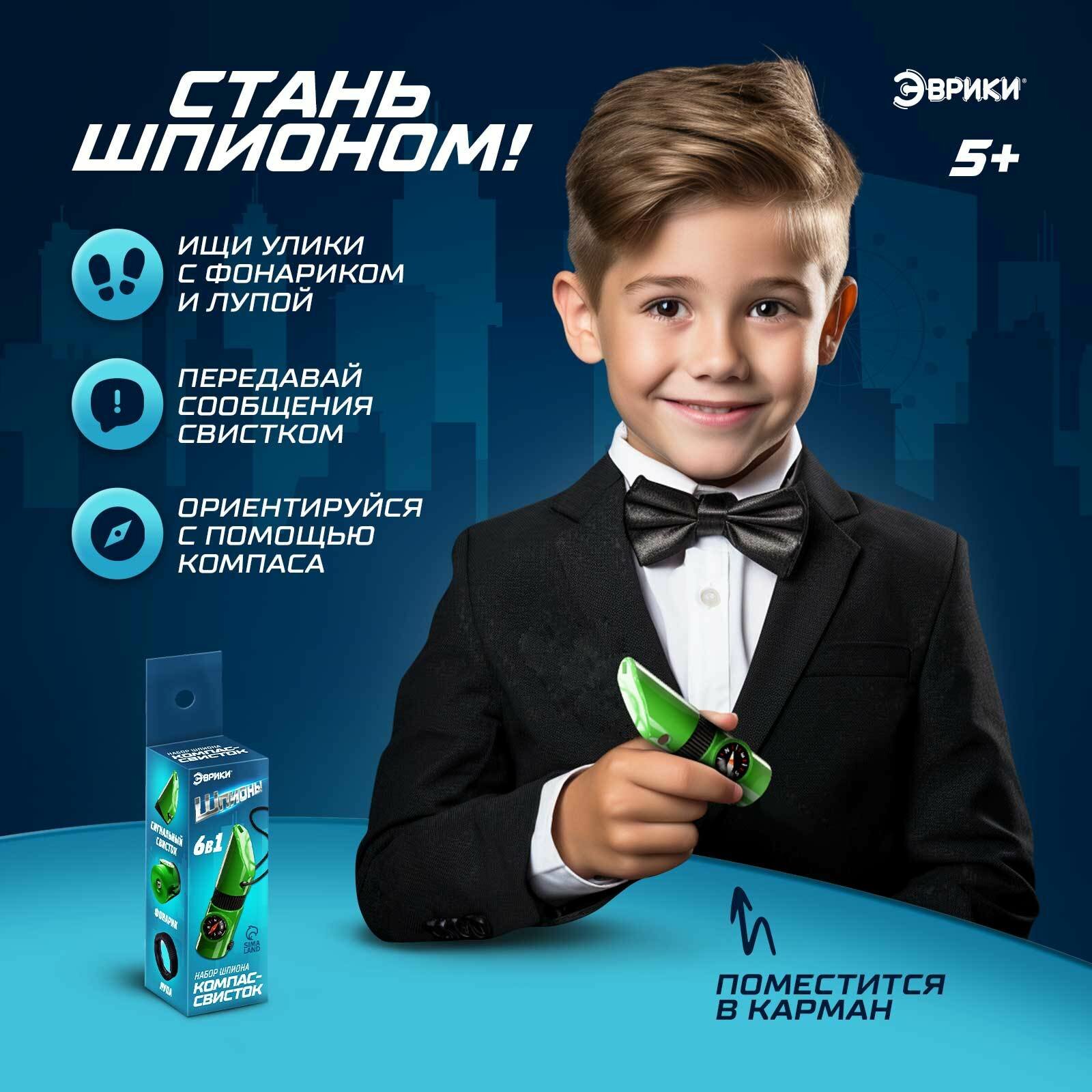 Набор шпиона «Секретная серия», очки заднего видения, шифровщик, компас и задания