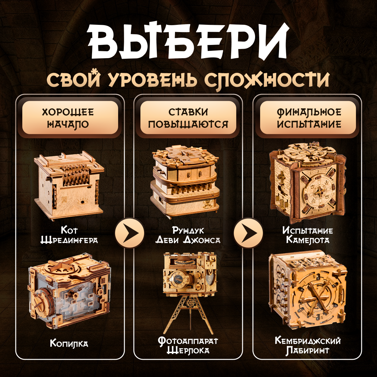Купить Головоломка для детей и взрослых, деревянный "Квестбокс: Испытание Камелота"
