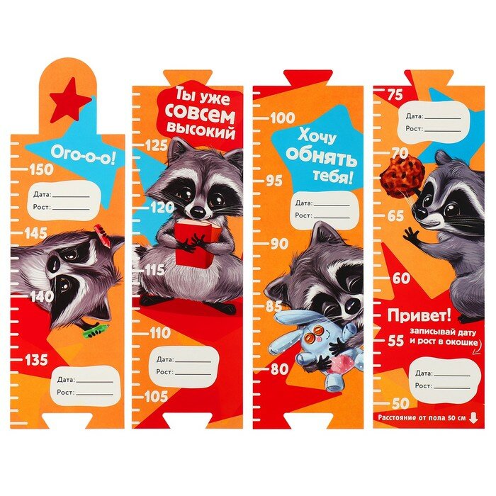 Купить Наклейка - ростомер 150 см «Енот» (2 шт)