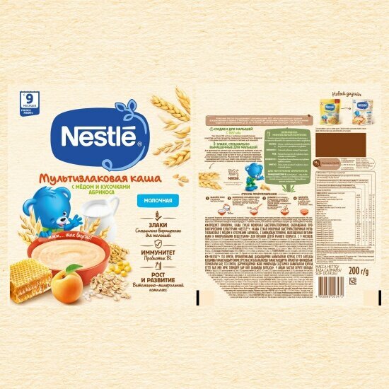 Каша молочная мультизлаковая с мёдом и кусочками абрикоса Nestlé с 9 мес 200г интересное: