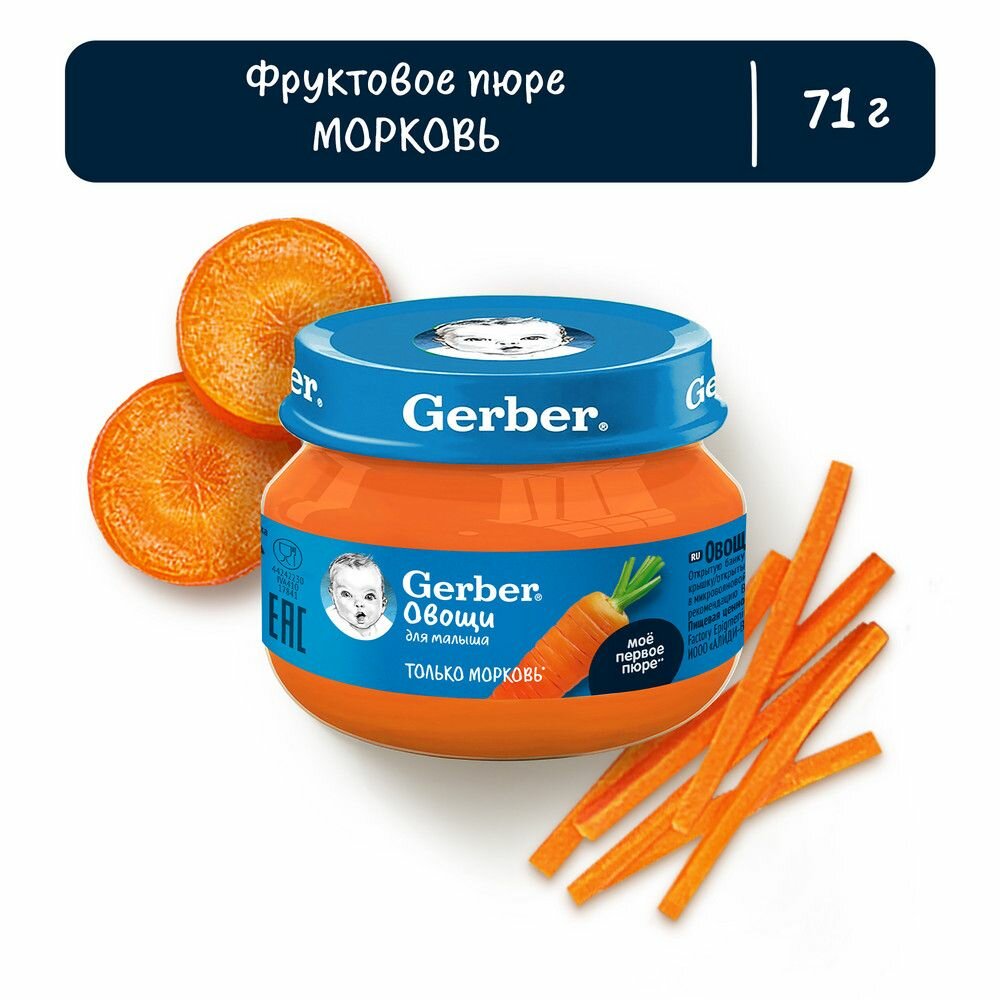 Пюре детское овощное Морковь Gerber 71г 4 шт интересное: