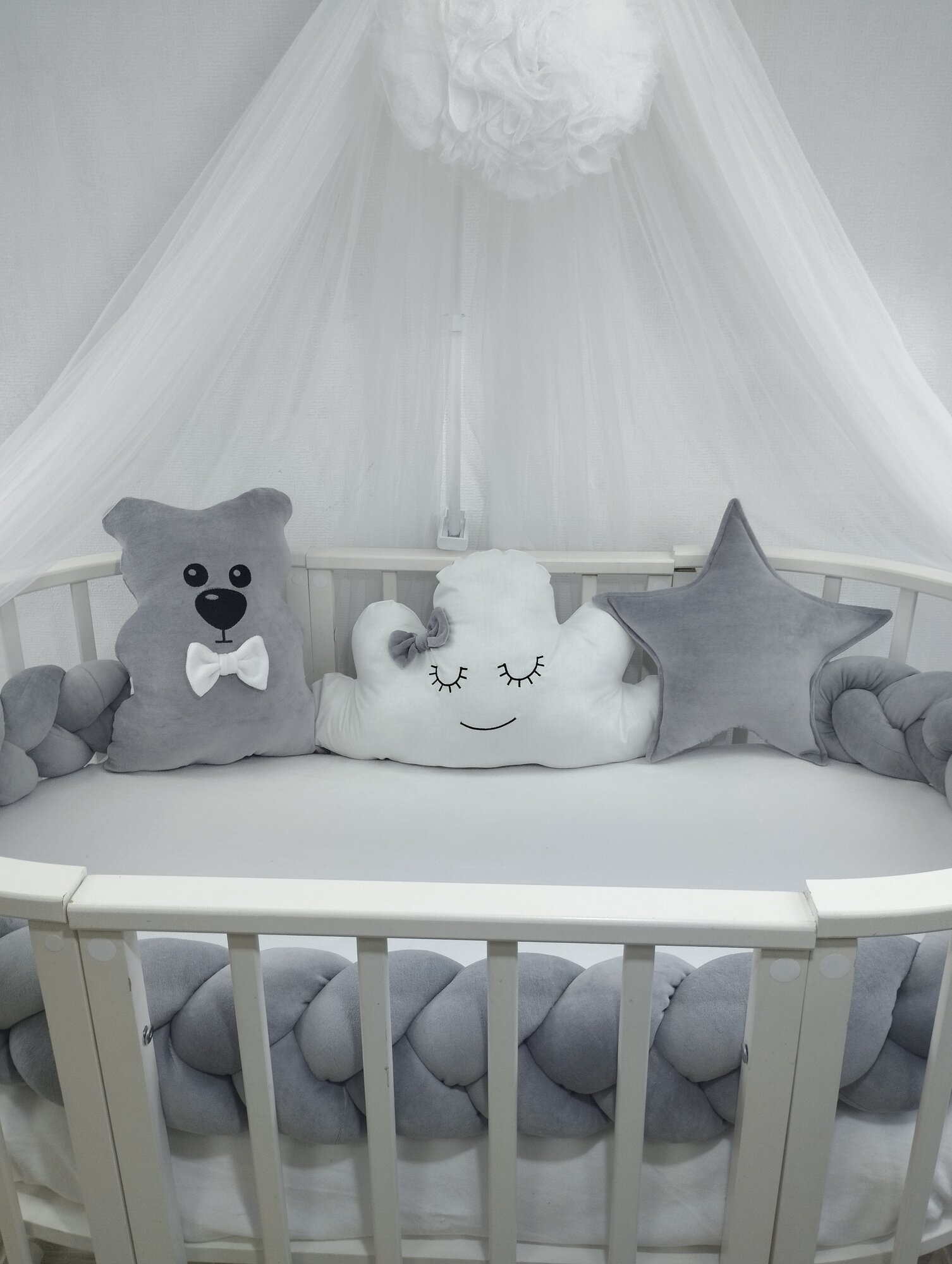 Бортики в кроватку косичка, облако, мишка и звездочка интересное: