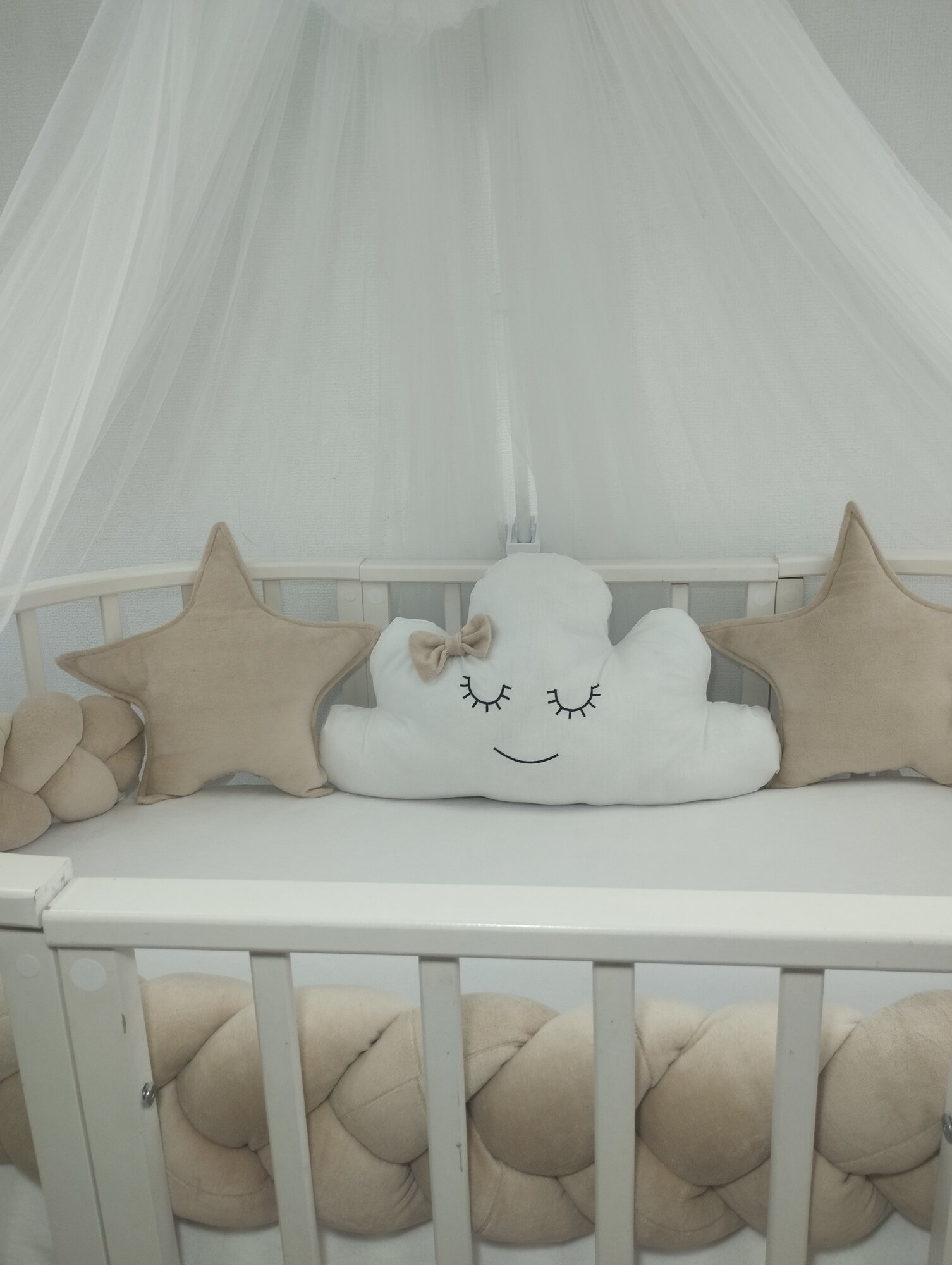 Бортики в кроватку косичка, облако и звездочки