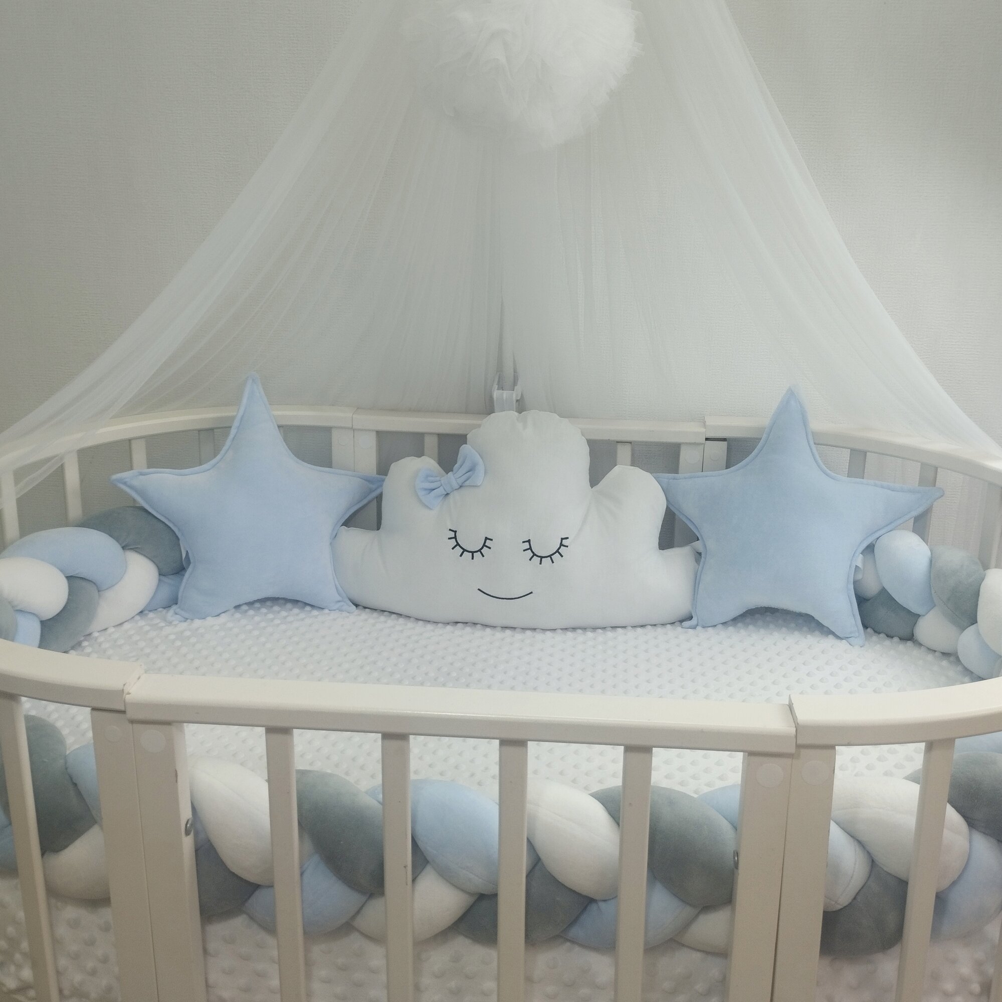| Комплектация | Бортик-коса - 1шт , Подушка-облако - 1шт , Подушка-звезда - 2 шт |