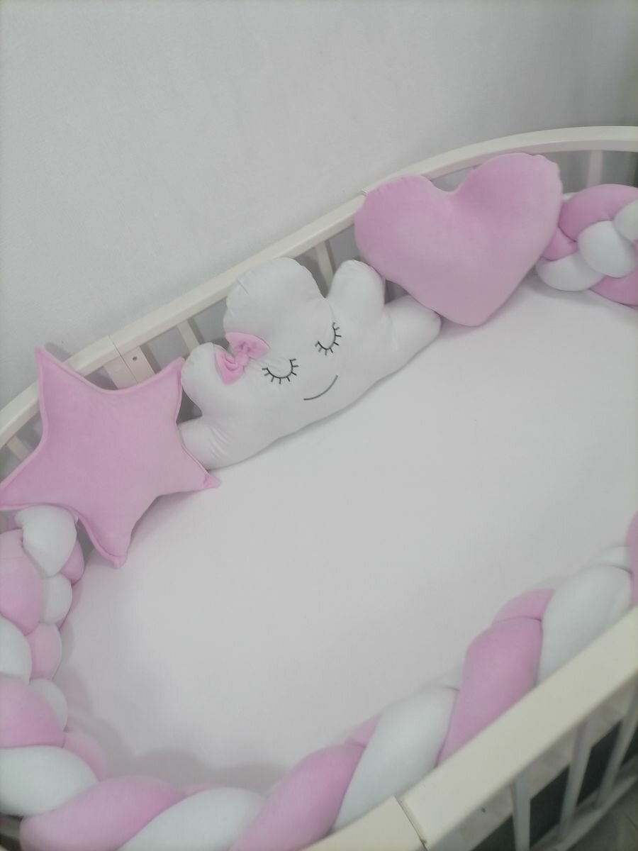Бортики в кроватку косичка, облако и звездочки