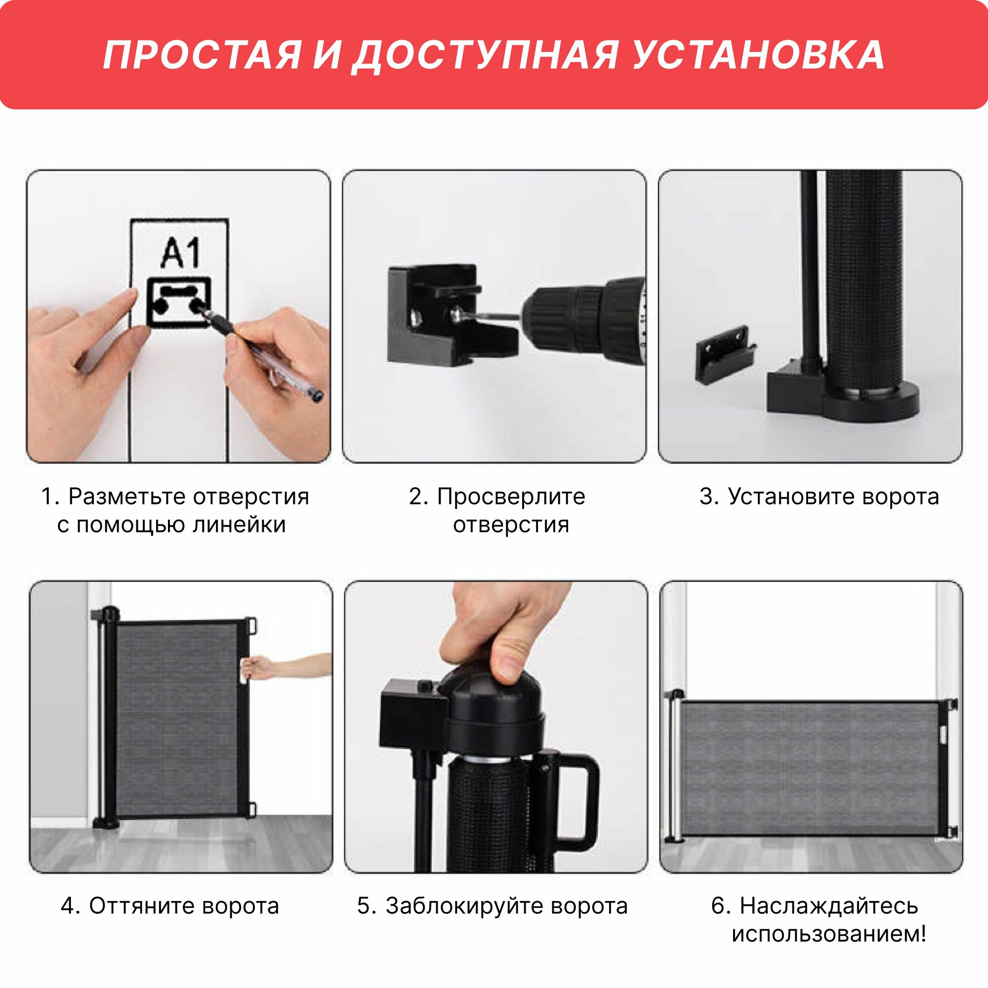 Ворота безопасности MagicO Black, 2 комплекта крепления, до 150 см/забор для ребенка/ограждение для детей и животных/загородка для лестницы интересное: