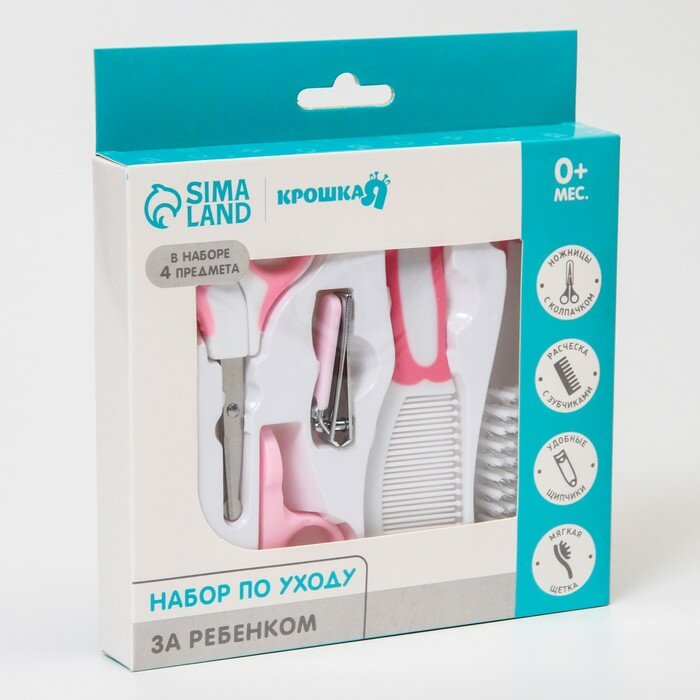 Набор по уходу за ребёнком, 6 предметов: детская расчёска, щётка, книпсер с чехлом, безопасные ножницы с колпачком, для девочки интересное: