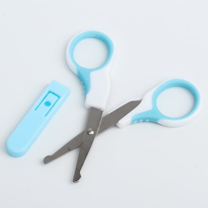 Купить Детский маникюрный набор: безопасные ножницы с колпачком, щипчики, пилочка, от 0 мес., цвет голубой