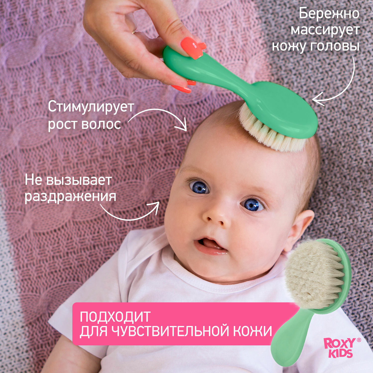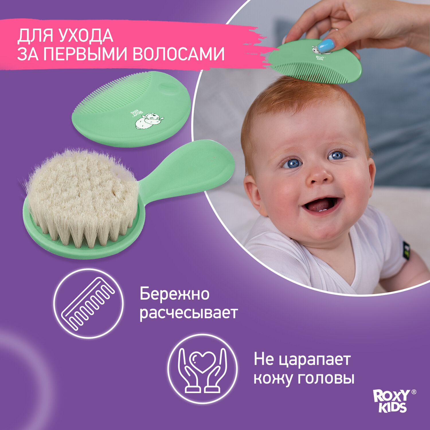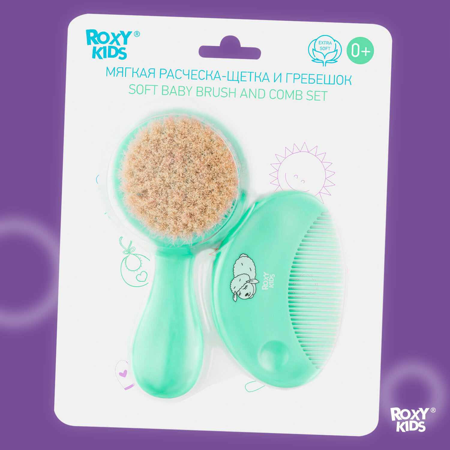 СохранитьМягкая расческа-щетка и гребешок от ROXY KIDS. Ворс из овечьей шерсти , цвет мятный интересное: